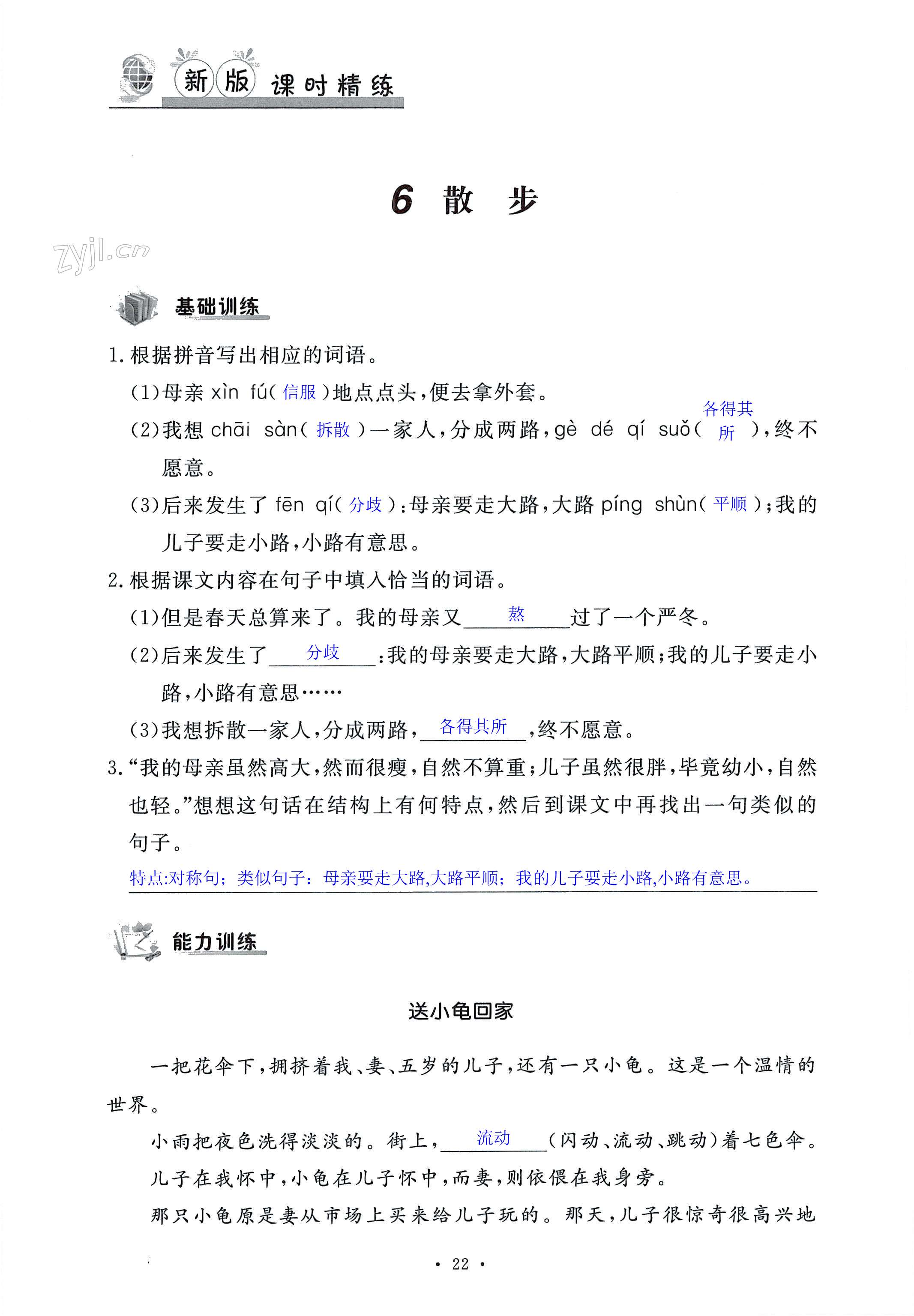 注:目前有些书本章节名称可能整理的还不是很完善,但都是按照顺序排列的,请同学们按照顺序仔细查找。练习册 2022年课时精练七年级语文上册人教版 答案主要是用来给同学们做完题方便对答案用的,请勿直接抄袭。