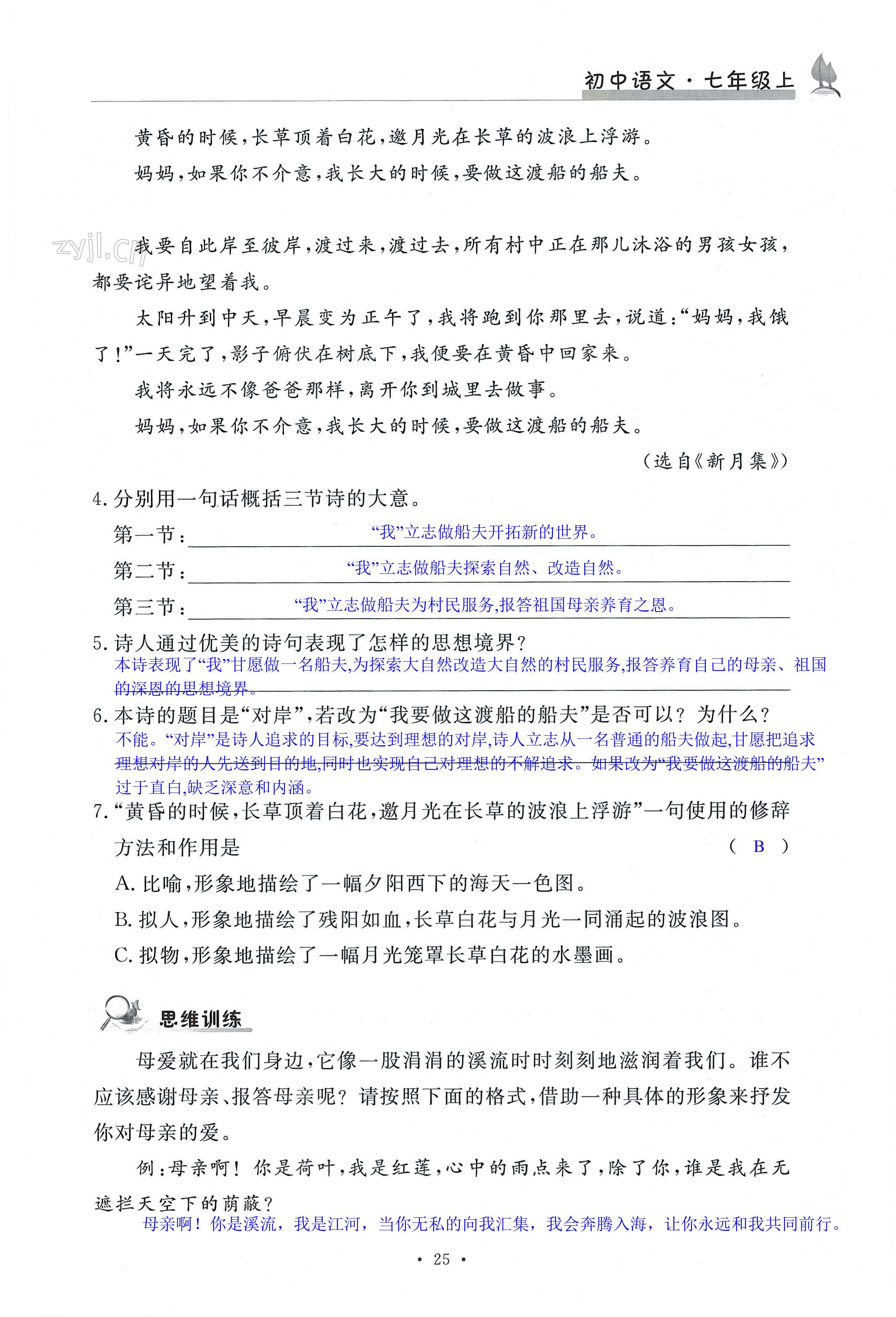注:目前有些书本章节名称可能整理的还不是很完善,但都是按照顺序排列的,请同学们按照顺序仔细查找。练习册 2022年课时精练七年级语文上册人教版 答案主要是用来给同学们做完题方便对答案用的,请勿直接抄袭。
