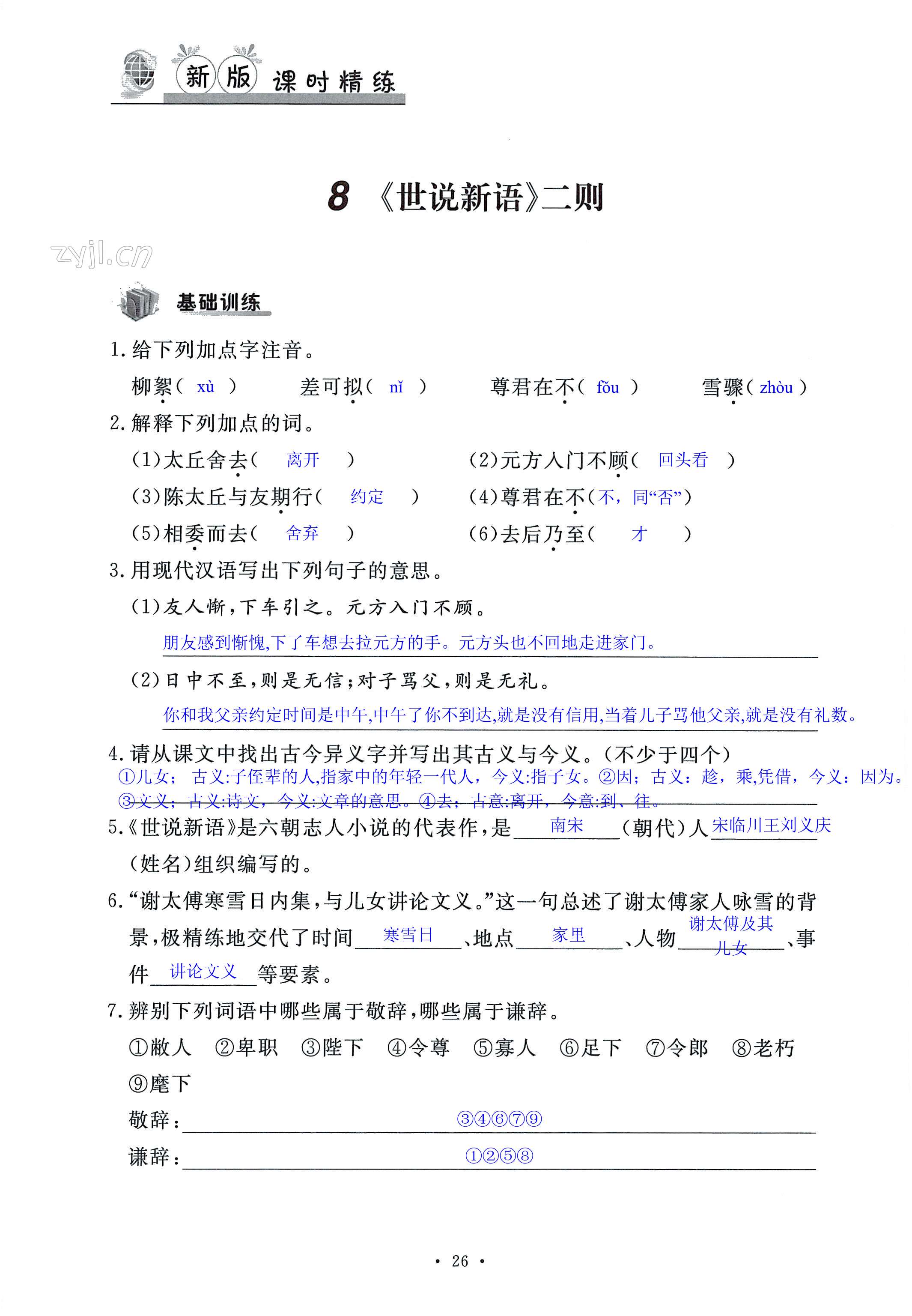 注:目前有些书本章节名称可能整理的还不是很完善,但都是按照顺序排列的,请同学们按照顺序仔细查找。练习册 2022年课时精练七年级语文上册人教版 答案主要是用来给同学们做完题方便对答案用的,请勿直接抄袭。