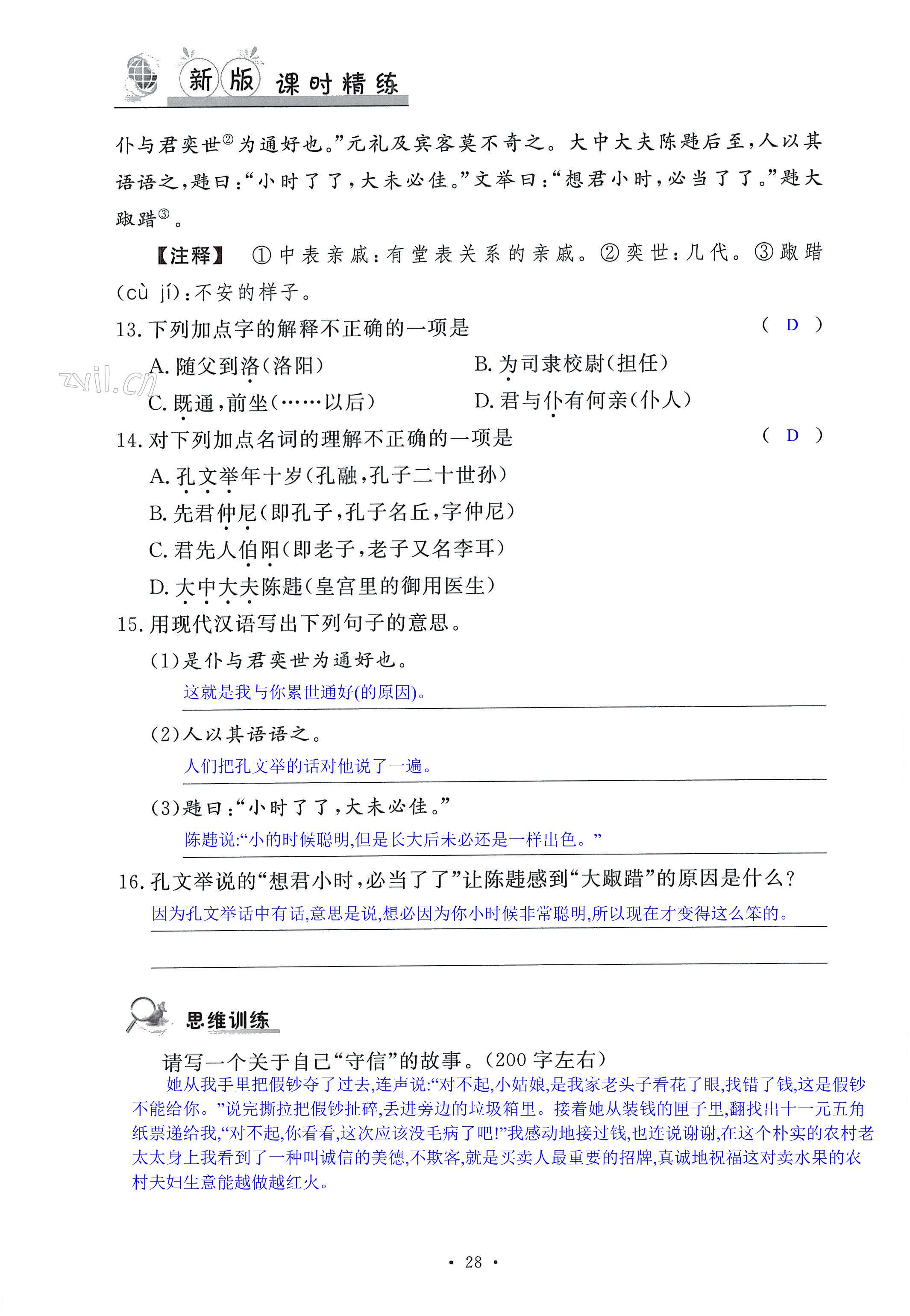 注:目前有些书本章节名称可能整理的还不是很完善,但都是按照顺序排列的,请同学们按照顺序仔细查找。练习册 2022年课时精练七年级语文上册人教版 答案主要是用来给同学们做完题方便对答案用的,请勿直接抄袭。
