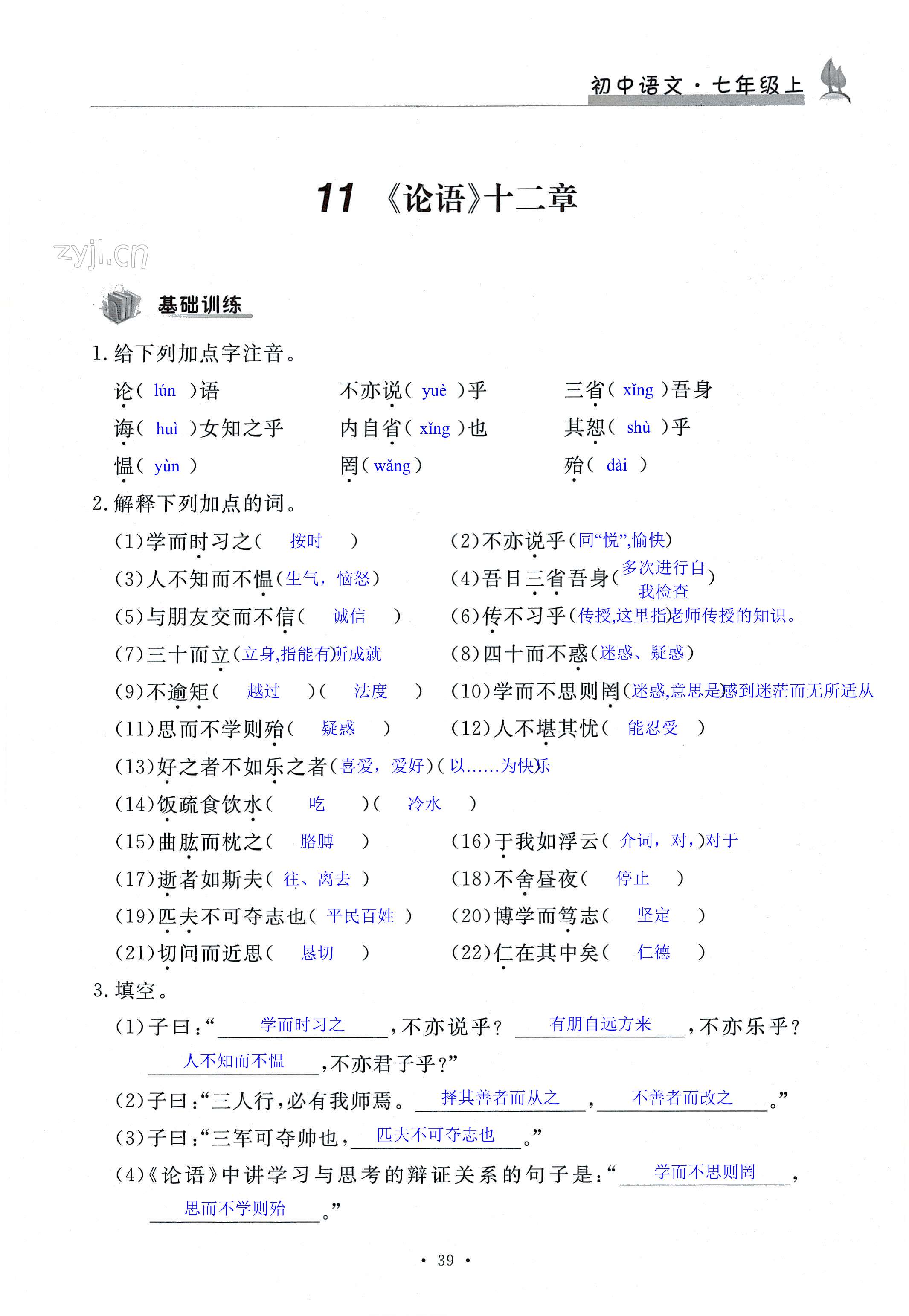 注:目前有些书本章节名称可能整理的还不是很完善,但都是按照顺序排列的,请同学们按照顺序仔细查找。练习册 2022年课时精练七年级语文上册人教版 答案主要是用来给同学们做完题方便对答案用的,请勿直接抄袭。