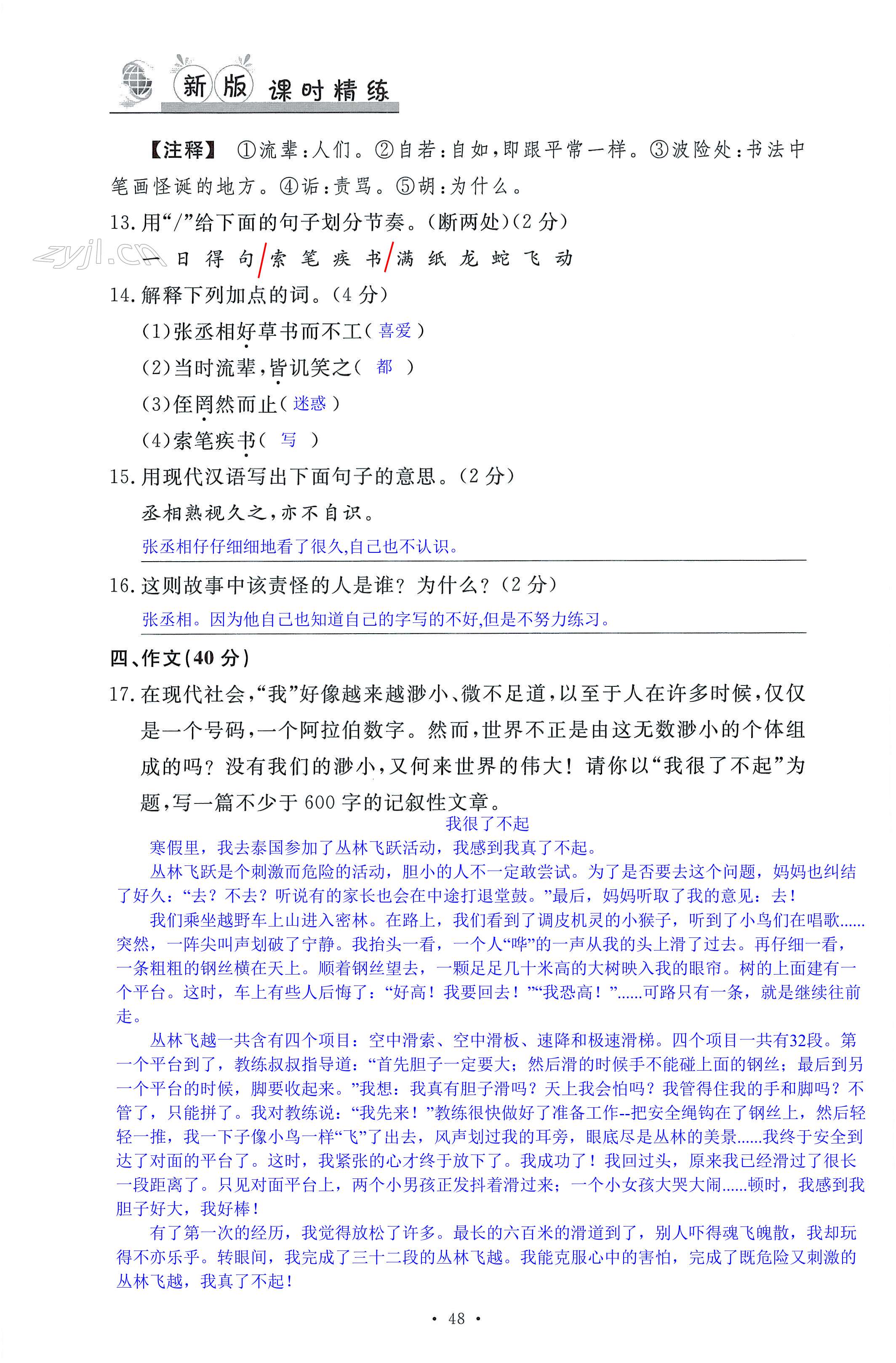 注:目前有些书本章节名称可能整理的还不是很完善,但都是按照顺序排列的,请同学们按照顺序仔细查找。练习册 2022年课时精练七年级语文上册人教版 答案主要是用来给同学们做完题方便对答案用的,请勿直接抄袭。
