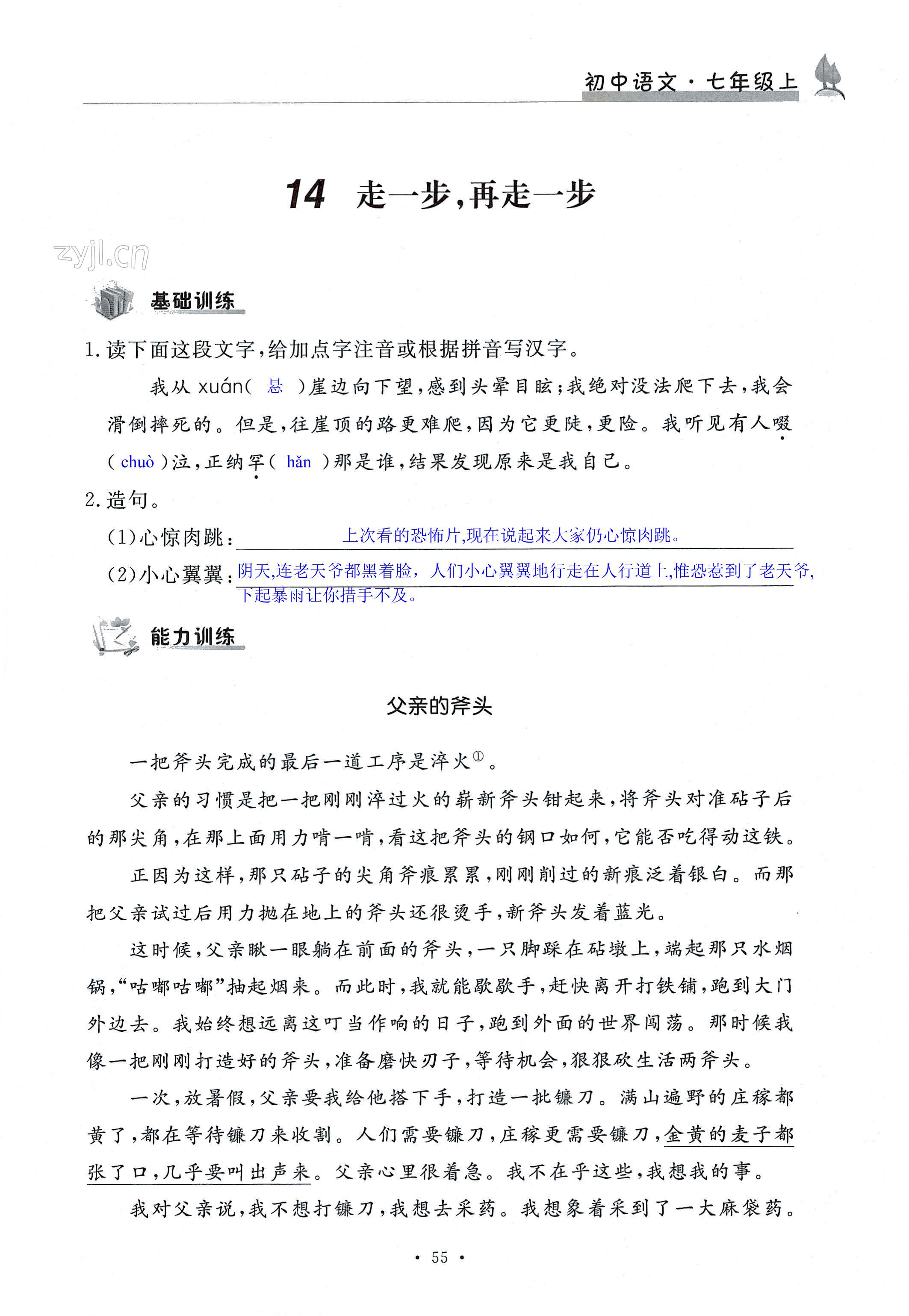 注:目前有些书本章节名称可能整理的还不是很完善,但都是按照顺序排列的,请同学们按照顺序仔细查找。练习册 2022年课时精练七年级语文上册人教版 答案主要是用来给同学们做完题方便对答案用的,请勿直接抄袭。