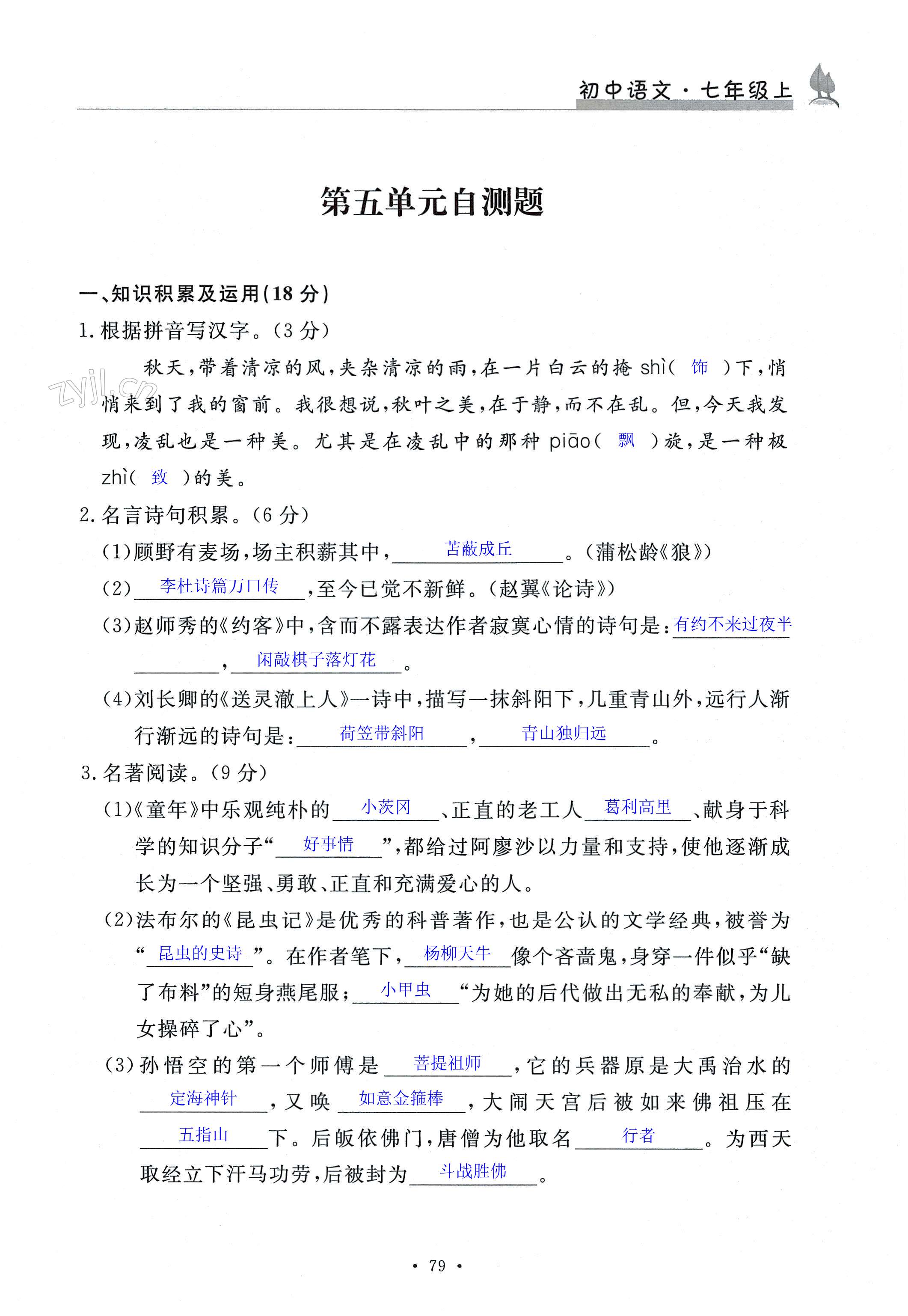 注:目前有些书本章节名称可能整理的还不是很完善,但都是按照顺序排列的,请同学们按照顺序仔细查找。练习册 2022年课时精练七年级语文上册人教版 答案主要是用来给同学们做完题方便对答案用的,请勿直接抄袭。