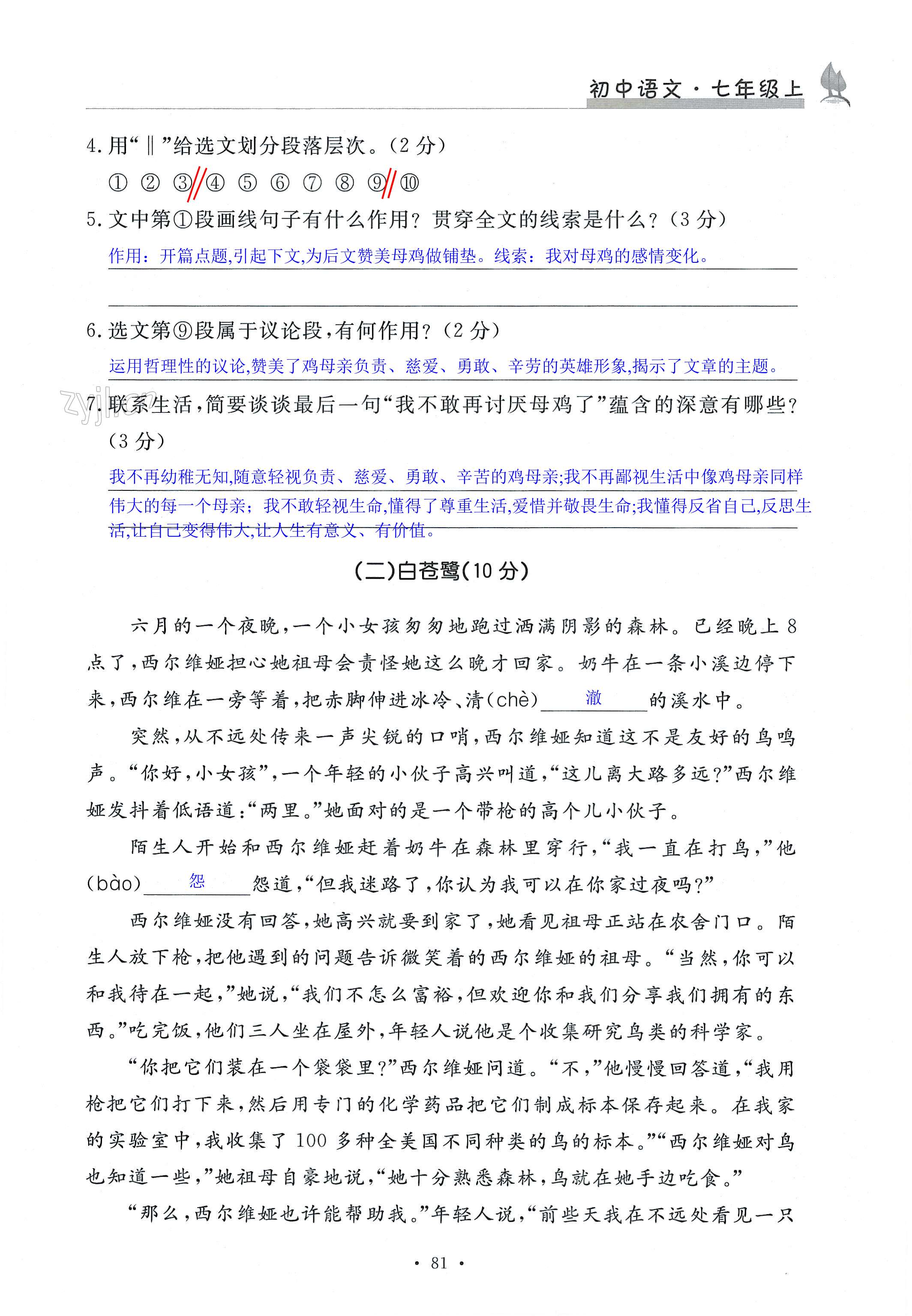 注:目前有些书本章节名称可能整理的还不是很完善,但都是按照顺序排列的,请同学们按照顺序仔细查找。练习册 2022年课时精练七年级语文上册人教版 答案主要是用来给同学们做完题方便对答案用的,请勿直接抄袭。
