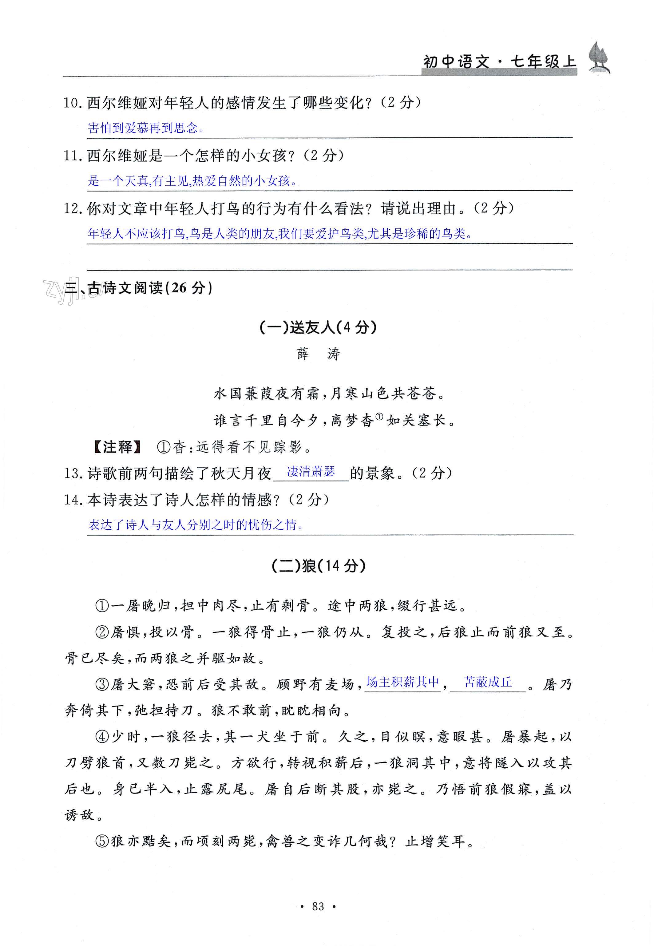 注:目前有些书本章节名称可能整理的还不是很完善,但都是按照顺序排列的,请同学们按照顺序仔细查找。练习册 2022年课时精练七年级语文上册人教版 答案主要是用来给同学们做完题方便对答案用的,请勿直接抄袭。