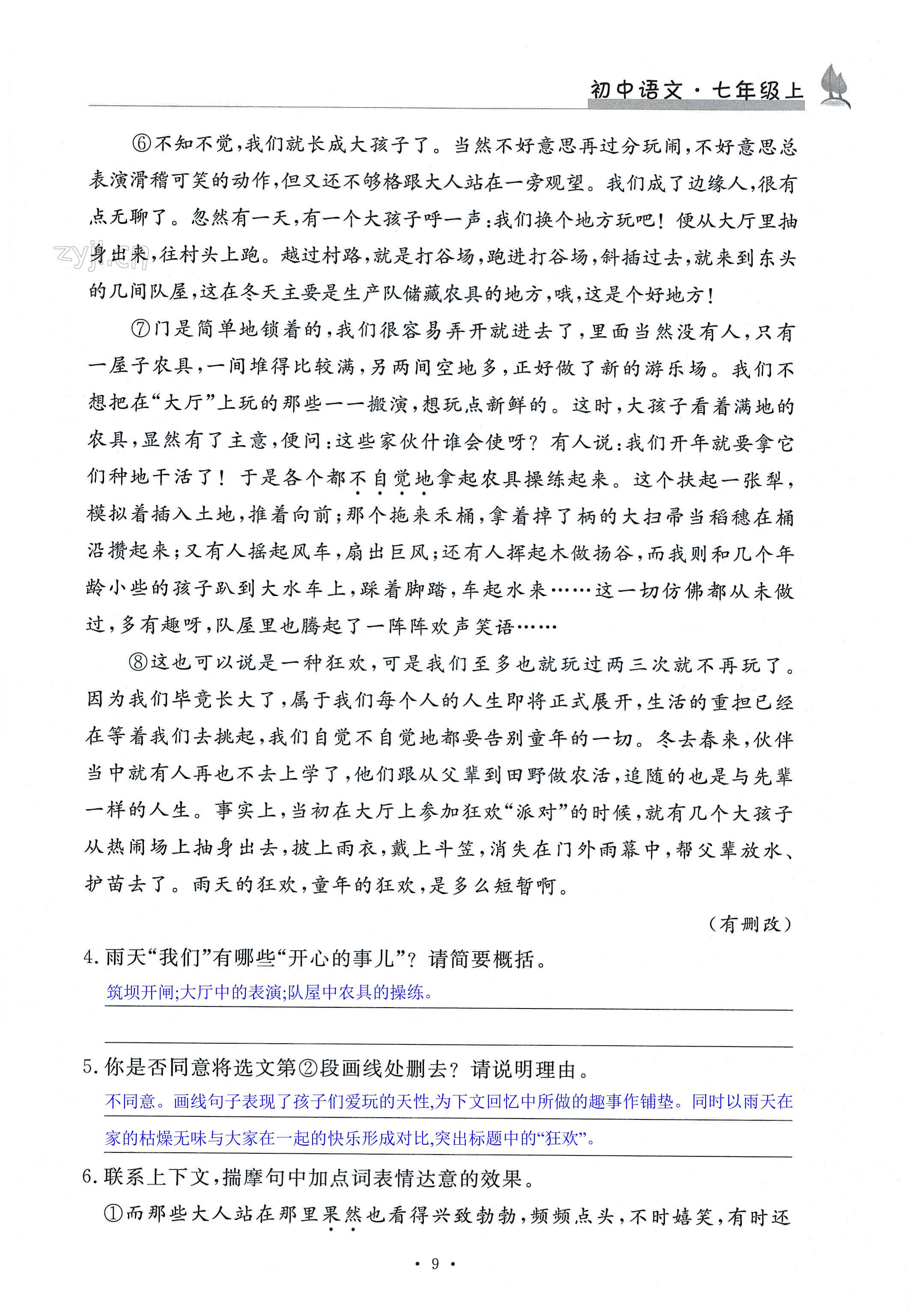 注:目前有些书本章节名称可能整理的还不是很完善,但都是按照顺序排列的,请同学们按照顺序仔细查找。练习册 2022年课时精练七年级语文上册人教版 答案主要是用来给同学们做完题方便对答案用的,请勿直接抄袭。
