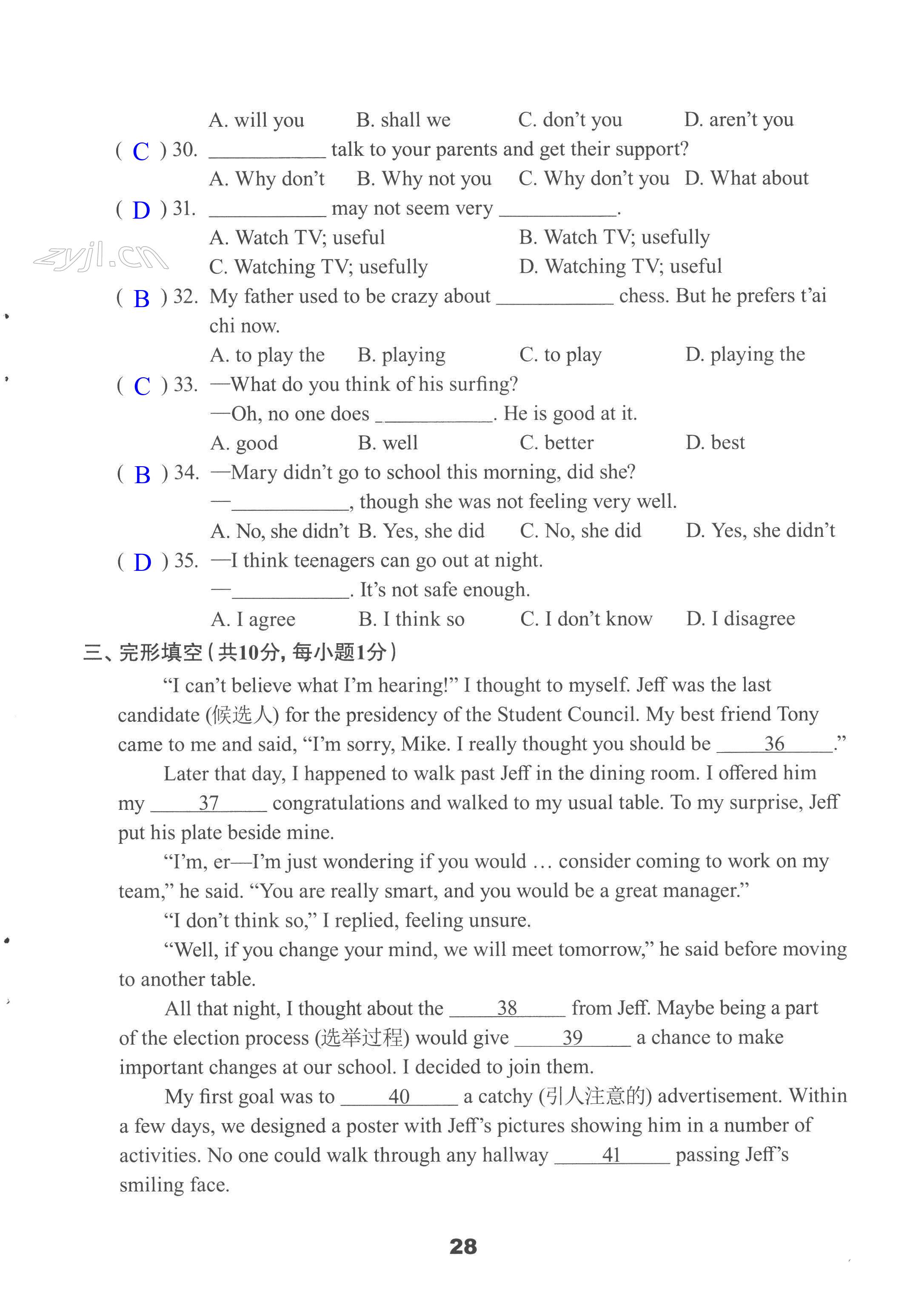 注:目前有些书本章节名称可能整理的还不是很完善,但都是按照顺序排列的,请同学们按照顺序仔细查找。练习册 2022年学习与评价活页卷九年级英语上册译林版提优版 答案主要是用来给同学们做完题方便对答案用的,请勿直接抄袭。