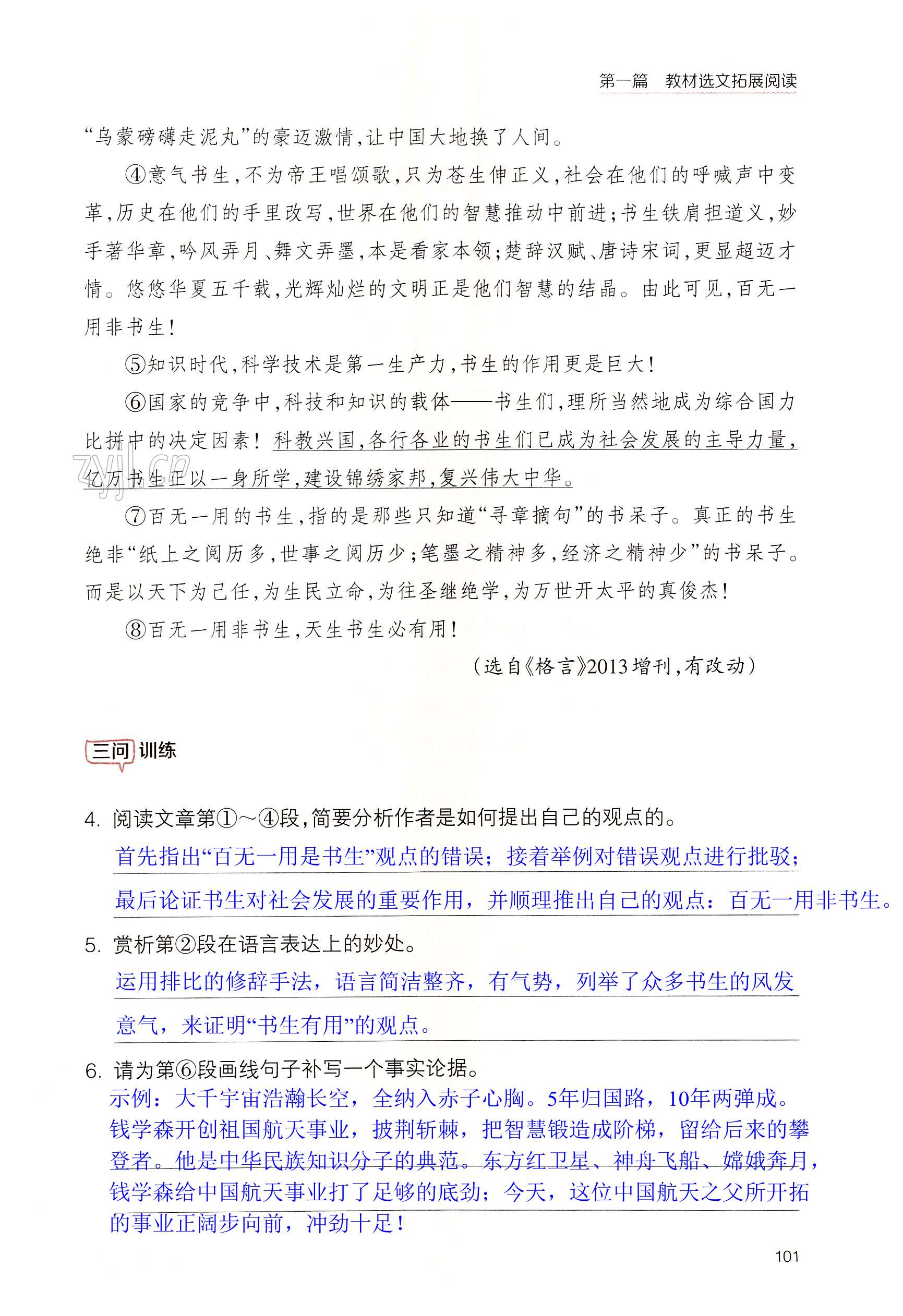 注:目前有些书本章节名称可能整理的还不是很完善,但都是按照顺序排列的,请同学们按照顺序仔细查找。练习册 2022年拓展阅读三问训练九年级语文上册人教版 答案主要是用来给同学们做完题方便对答案用的,请勿直接抄袭。