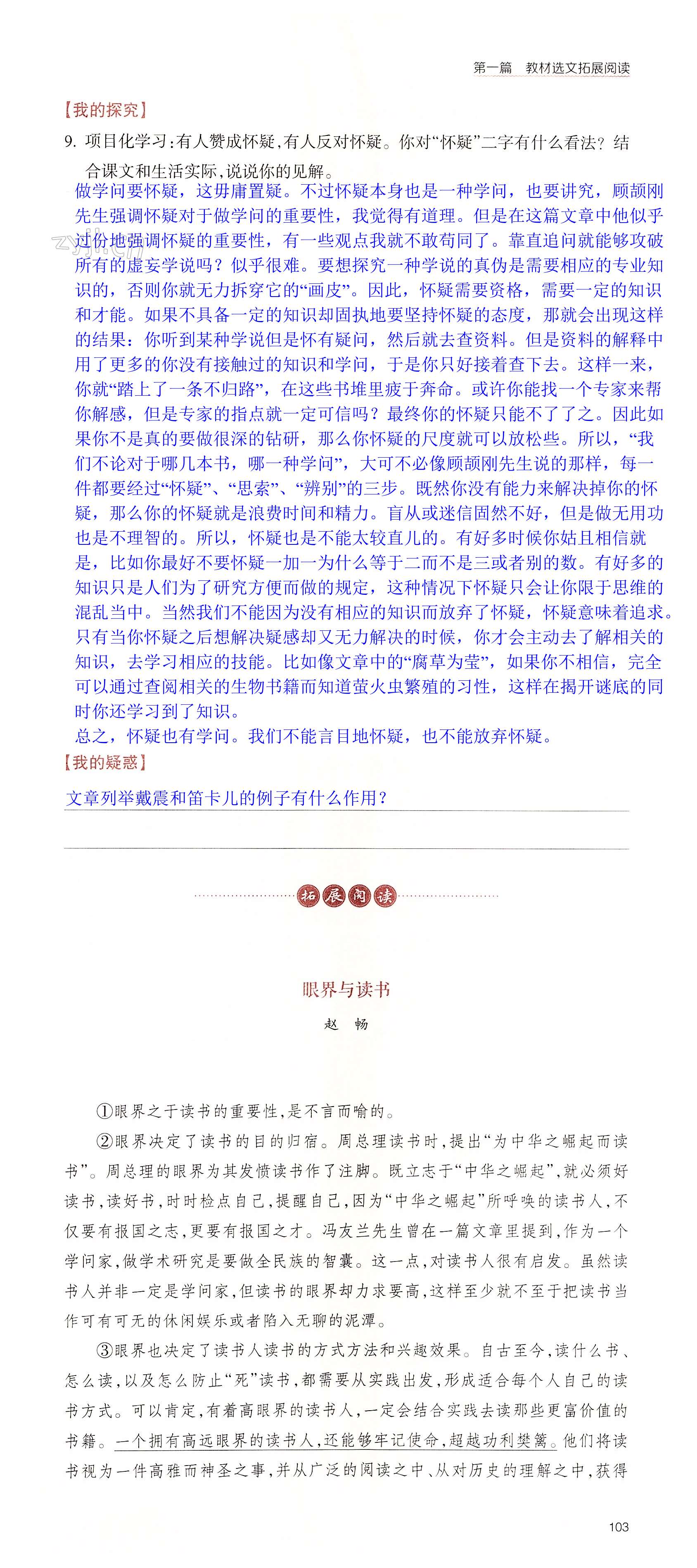 注:目前有些书本章节名称可能整理的还不是很完善,但都是按照顺序排列的,请同学们按照顺序仔细查找。练习册 2022年拓展阅读三问训练九年级语文上册人教版 答案主要是用来给同学们做完题方便对答案用的,请勿直接抄袭。