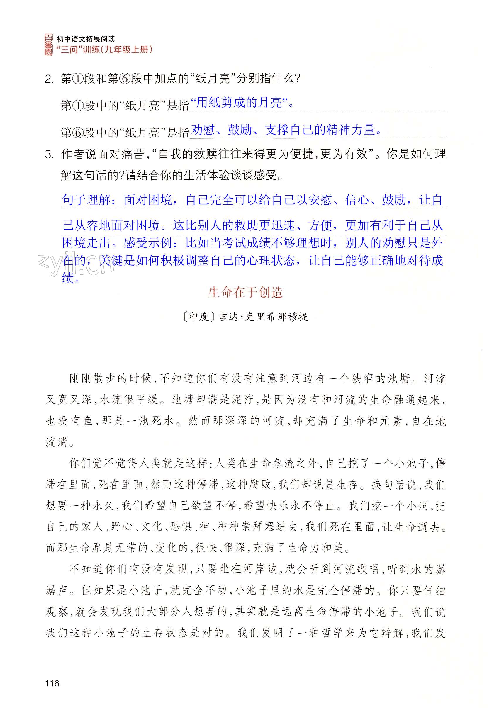 2022年拓展阅读三问训练九年级语文上册人教版