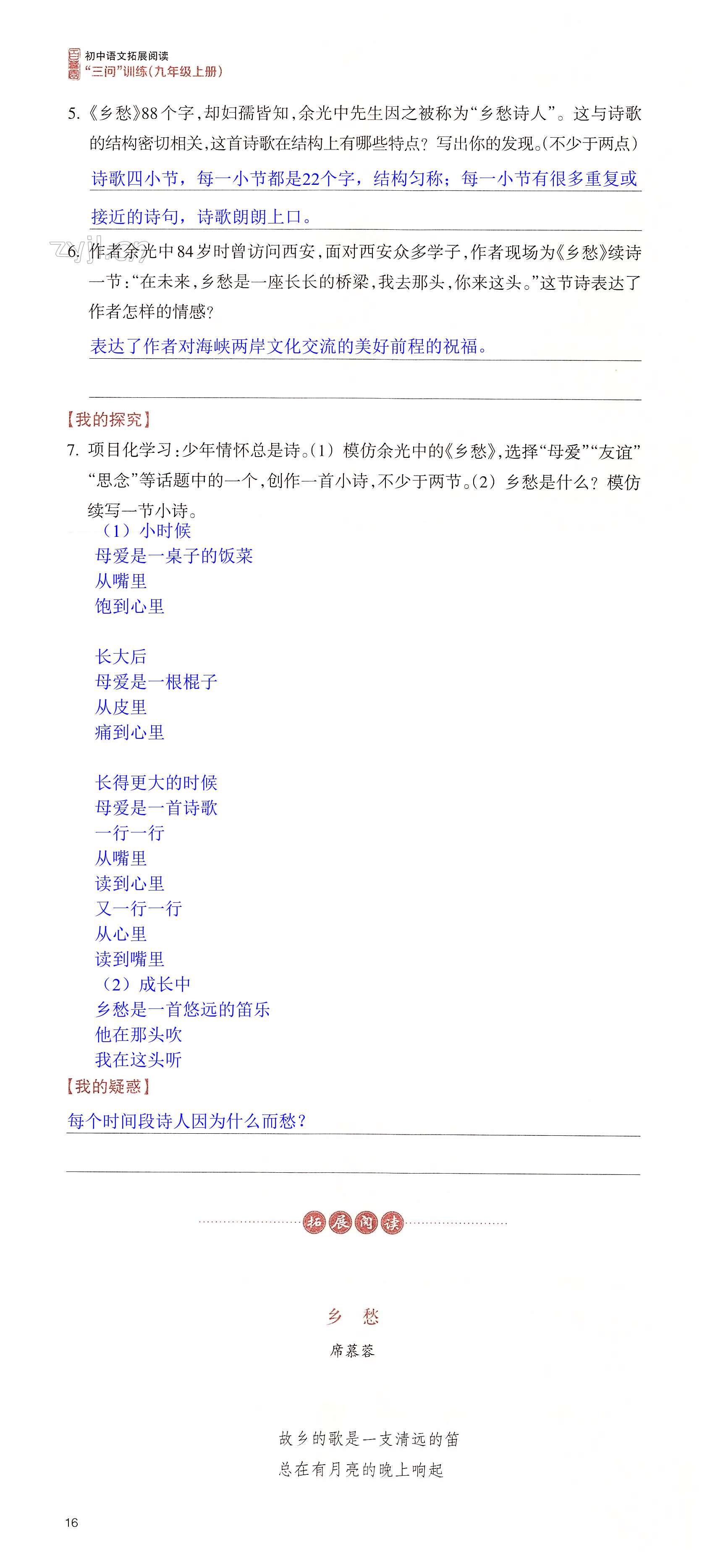 注:目前有些书本章节名称可能整理的还不是很完善,但都是按照顺序排列的,请同学们按照顺序仔细查找。练习册 2022年拓展阅读三问训练九年级语文上册人教版 答案主要是用来给同学们做完题方便对答案用的,请勿直接抄袭。