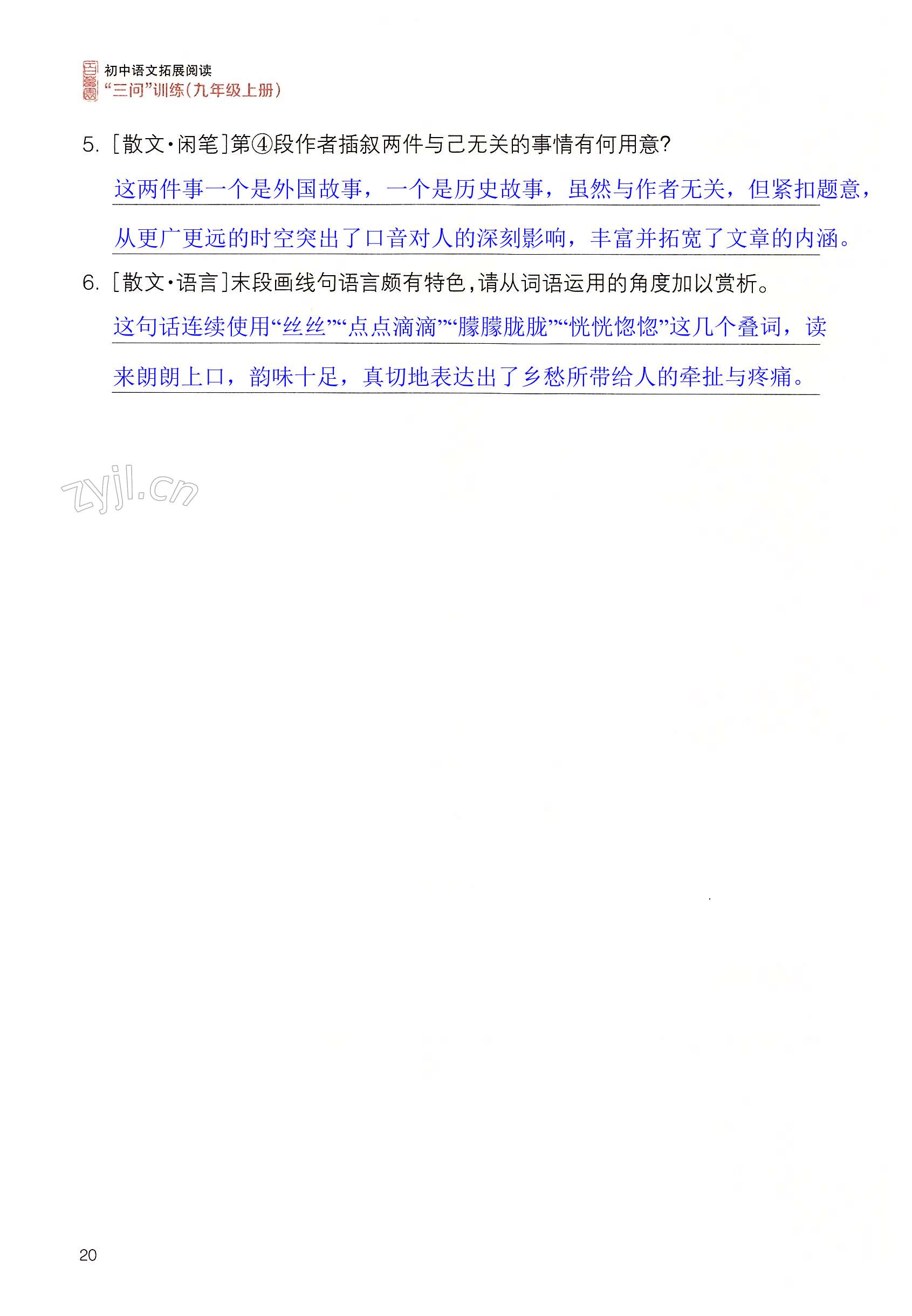 注:目前有些书本章节名称可能整理的还不是很完善,但都是按照顺序排列的,请同学们按照顺序仔细查找。练习册 2022年拓展阅读三问训练九年级语文上册人教版 答案主要是用来给同学们做完题方便对答案用的,请勿直接抄袭。