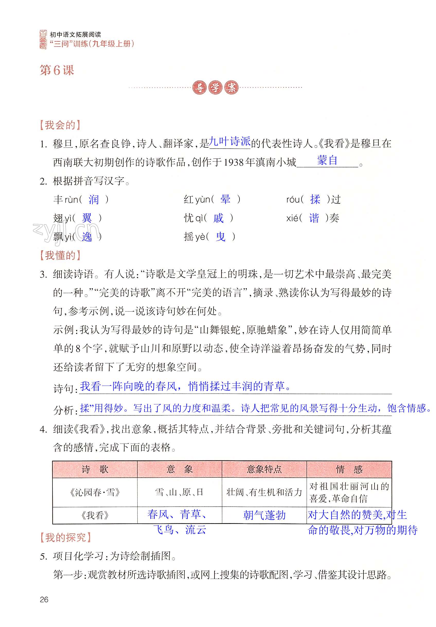 注:目前有些书本章节名称可能整理的还不是很完善,但都是按照顺序排列的,请同学们按照顺序仔细查找。练习册 2022年拓展阅读三问训练九年级语文上册人教版 答案主要是用来给同学们做完题方便对答案用的,请勿直接抄袭。
