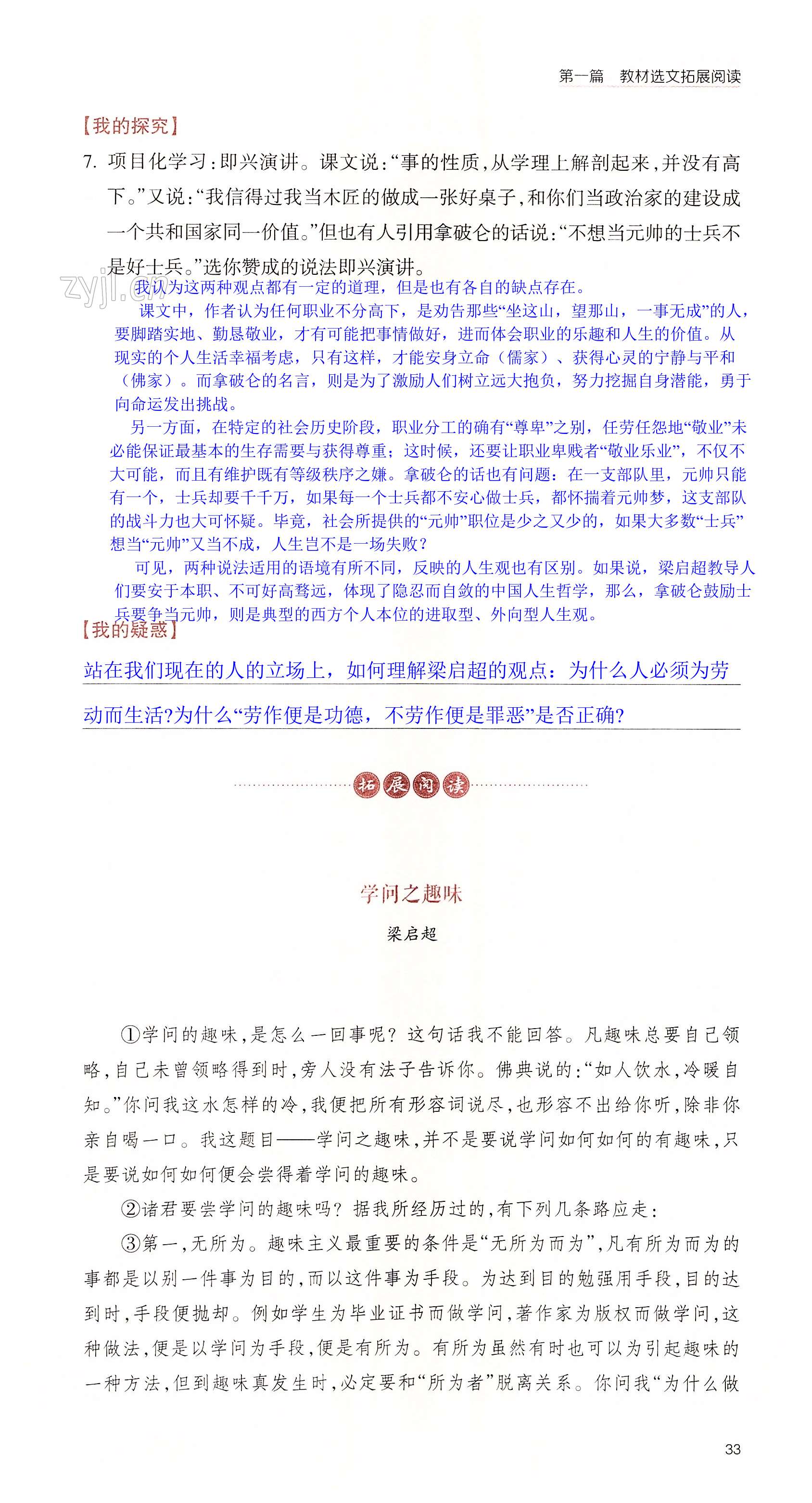 注:目前有些书本章节名称可能整理的还不是很完善,但都是按照顺序排列的,请同学们按照顺序仔细查找。练习册 2022年拓展阅读三问训练九年级语文上册人教版 答案主要是用来给同学们做完题方便对答案用的,请勿直接抄袭。