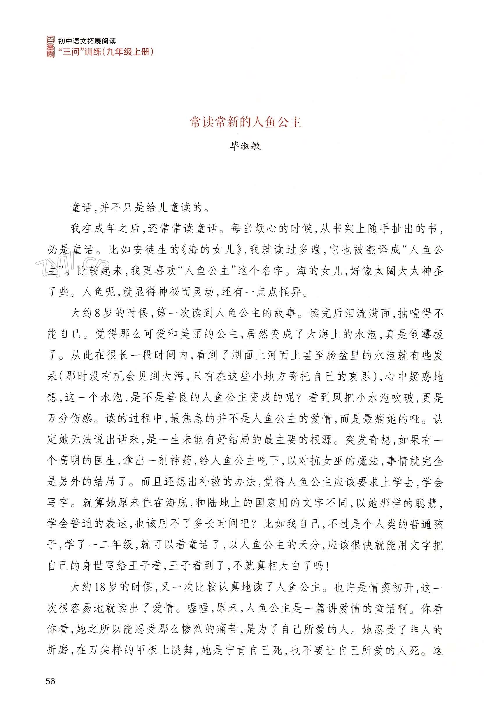 2022年拓展阅读三问训练九年级语文上册人教版