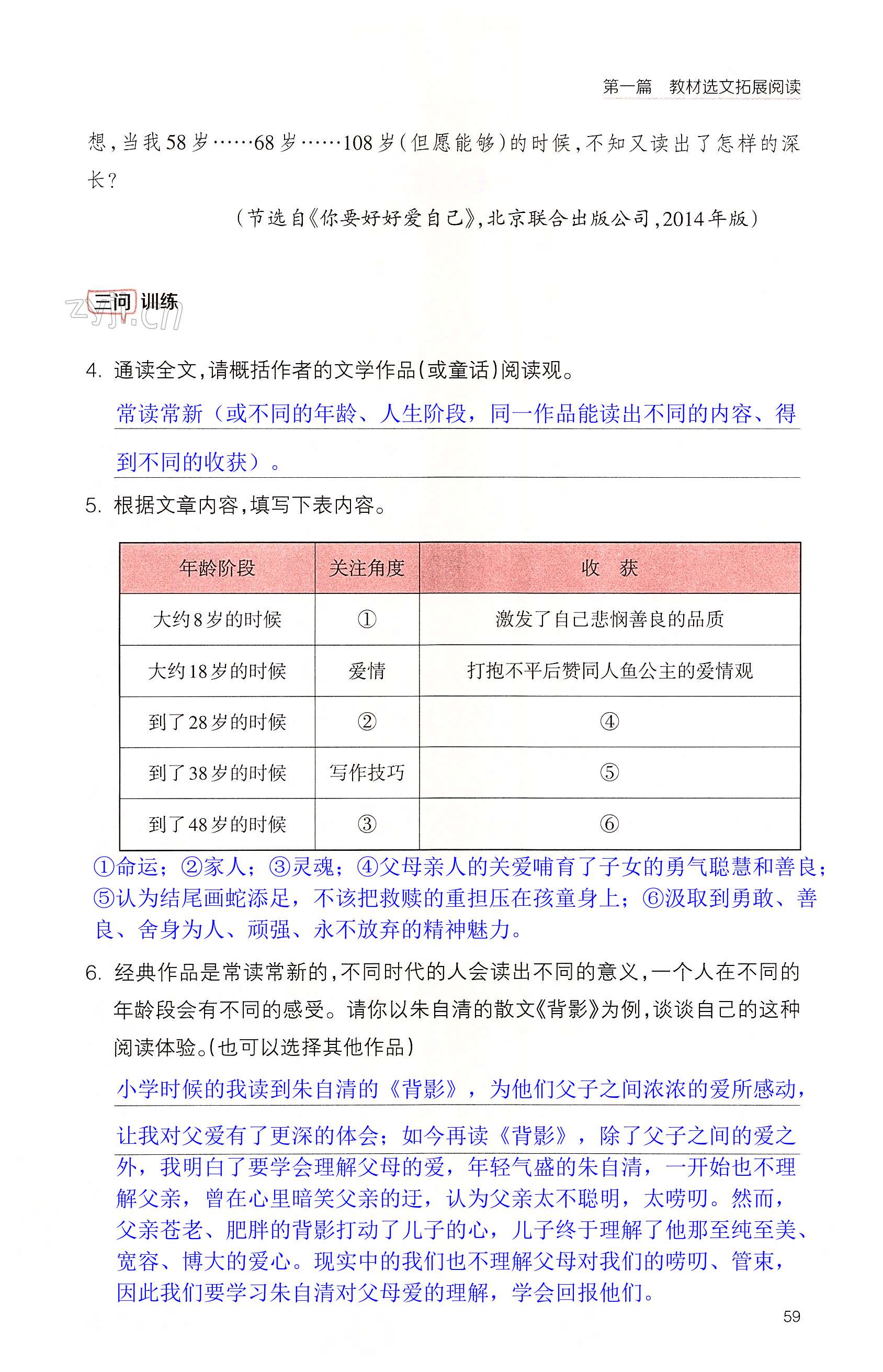 注:目前有些书本章节名称可能整理的还不是很完善,但都是按照顺序排列的,请同学们按照顺序仔细查找。练习册 2022年拓展阅读三问训练九年级语文上册人教版 答案主要是用来给同学们做完题方便对答案用的,请勿直接抄袭。