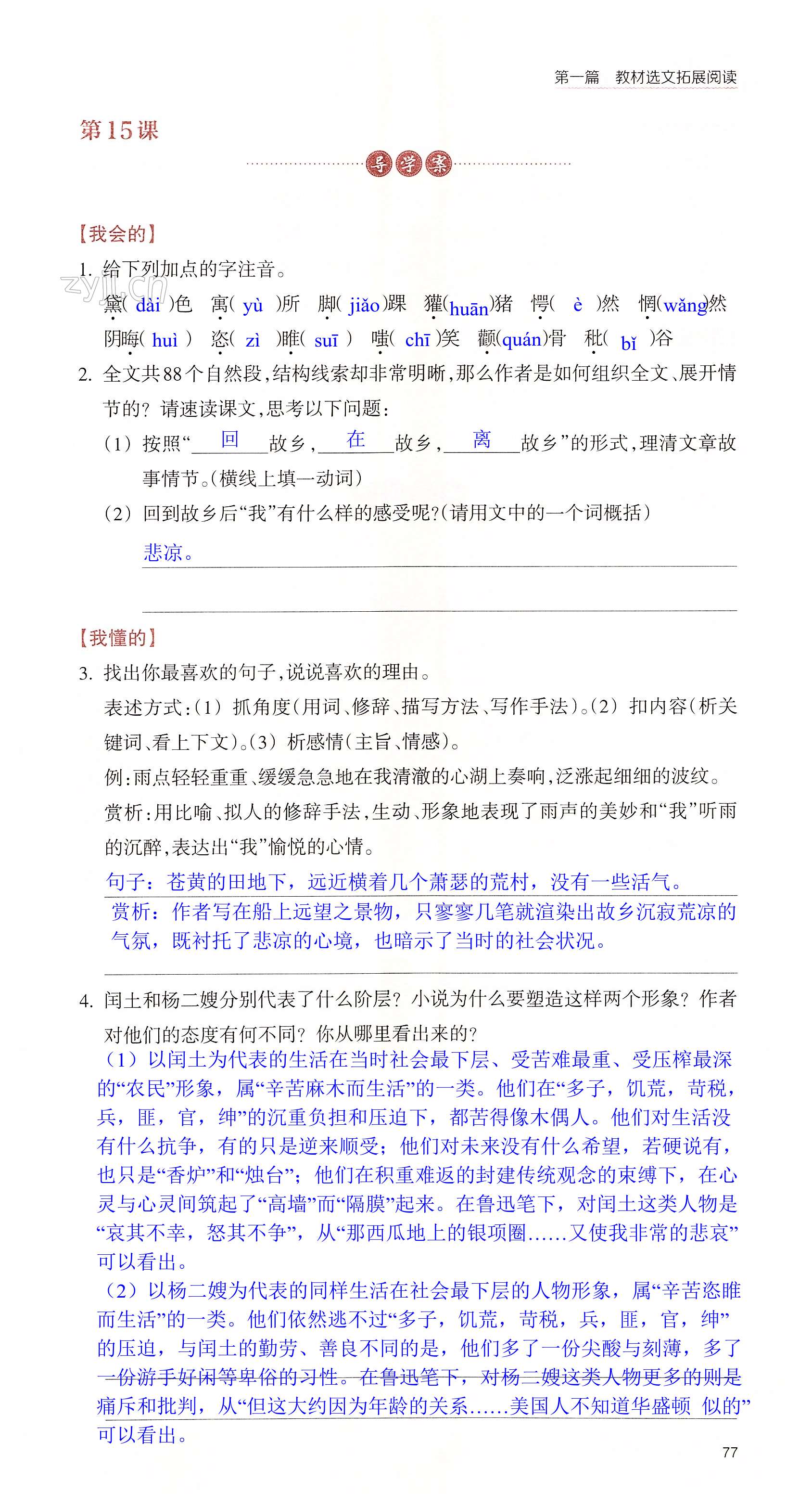 注:目前有些书本章节名称可能整理的还不是很完善,但都是按照顺序排列的,请同学们按照顺序仔细查找。练习册 2022年拓展阅读三问训练九年级语文上册人教版 答案主要是用来给同学们做完题方便对答案用的,请勿直接抄袭。