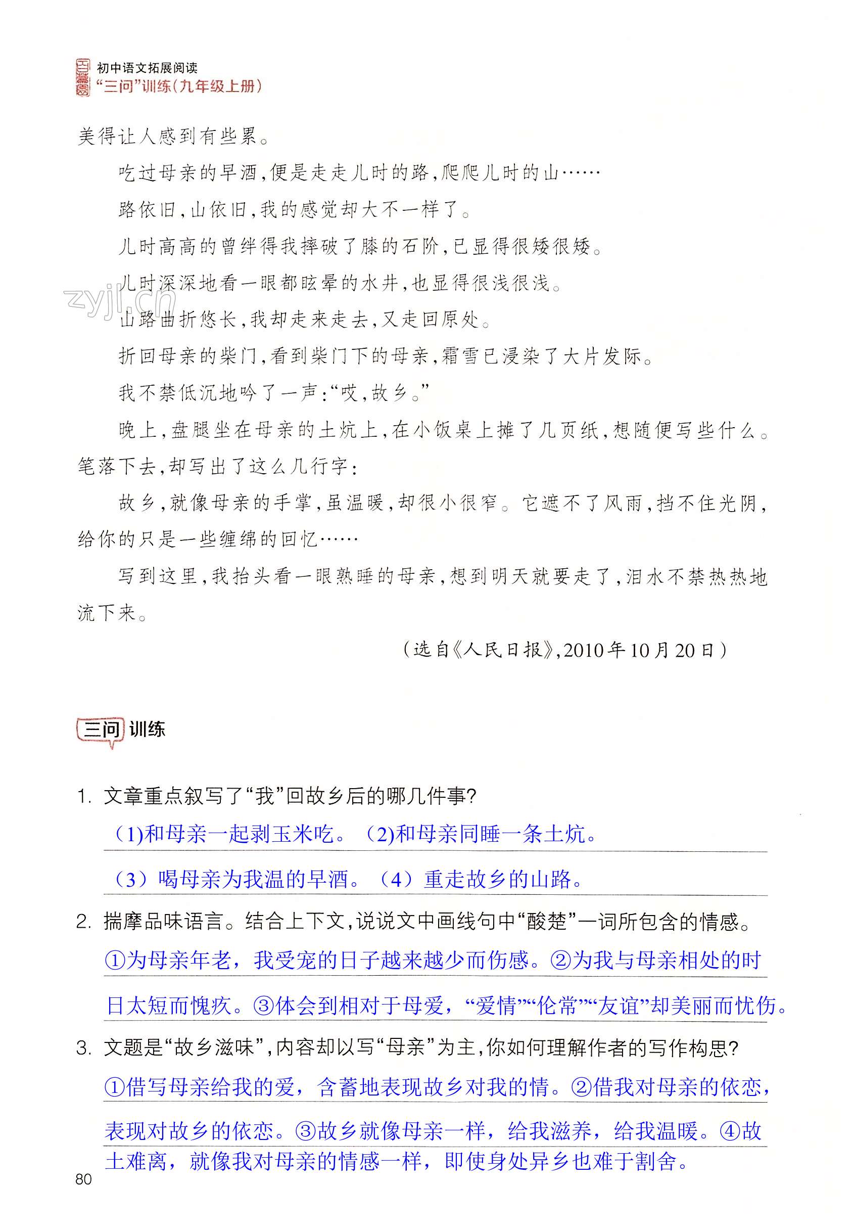 注:目前有些书本章节名称可能整理的还不是很完善,但都是按照顺序排列的,请同学们按照顺序仔细查找。练习册 2022年拓展阅读三问训练九年级语文上册人教版 答案主要是用来给同学们做完题方便对答案用的,请勿直接抄袭。