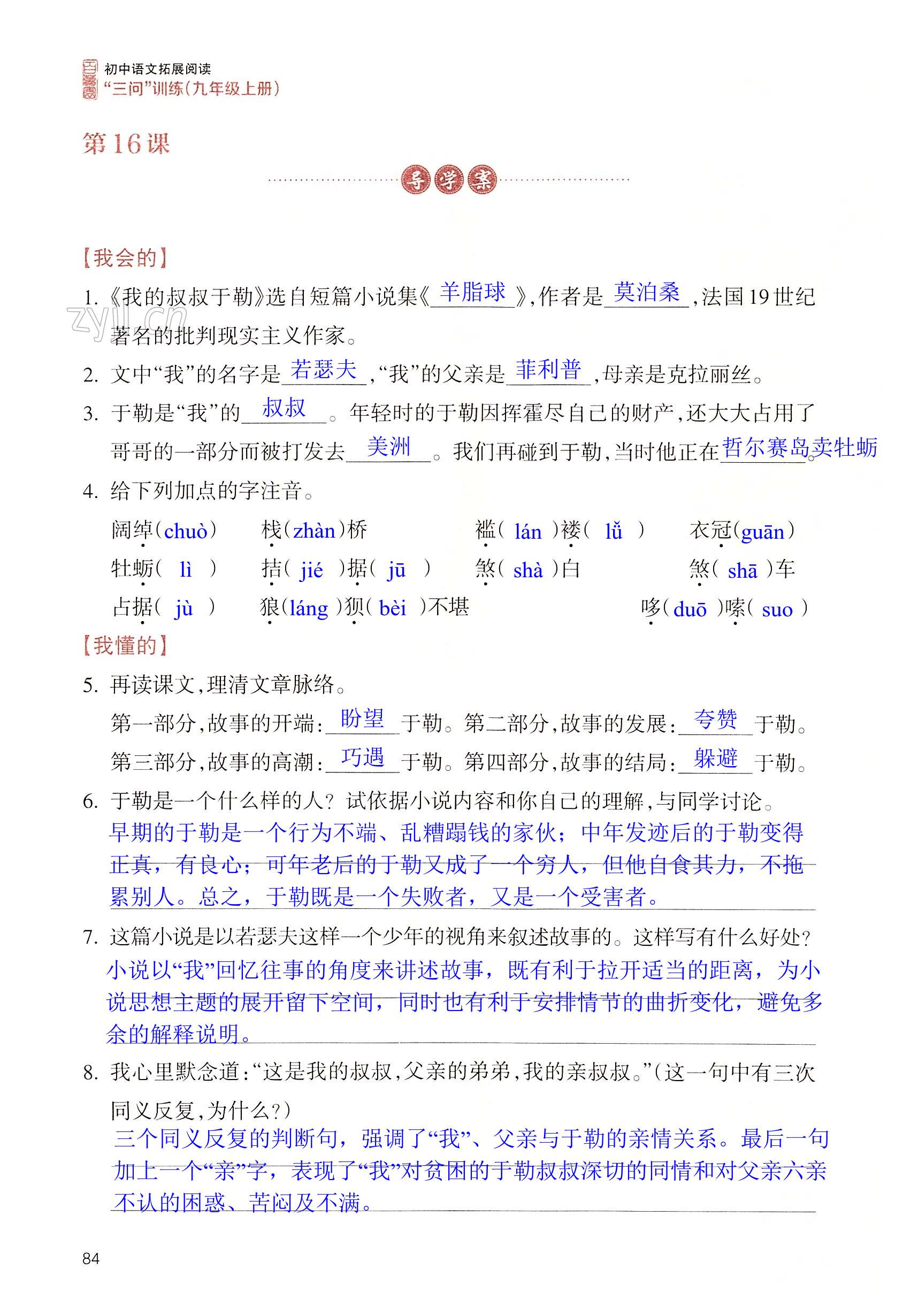 注:目前有些书本章节名称可能整理的还不是很完善,但都是按照顺序排列的,请同学们按照顺序仔细查找。练习册 2022年拓展阅读三问训练九年级语文上册人教版 答案主要是用来给同学们做完题方便对答案用的,请勿直接抄袭。