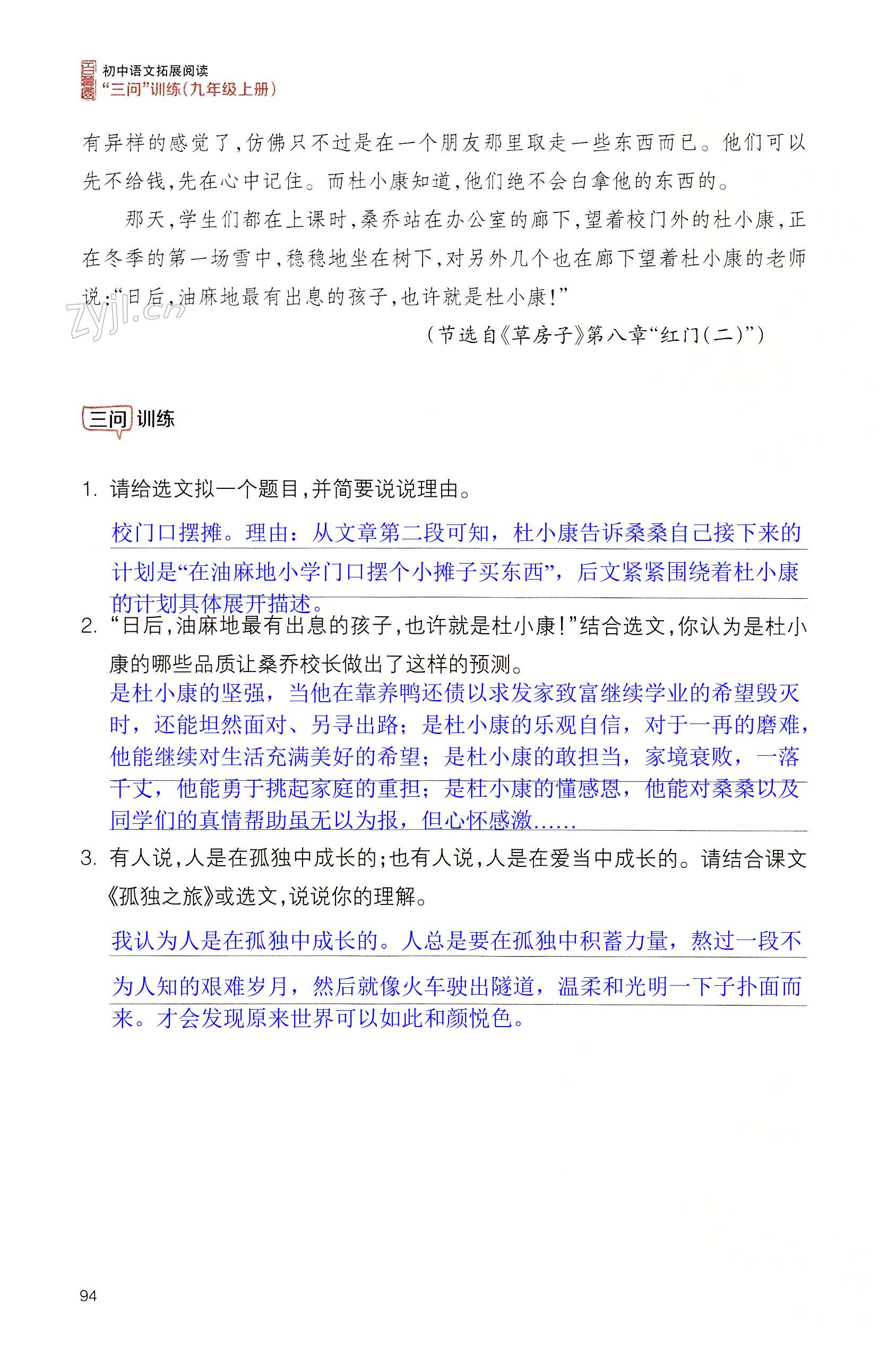 注:目前有些书本章节名称可能整理的还不是很完善,但都是按照顺序排列的,请同学们按照顺序仔细查找。练习册 2022年拓展阅读三问训练九年级语文上册人教版 答案主要是用来给同学们做完题方便对答案用的,请勿直接抄袭。