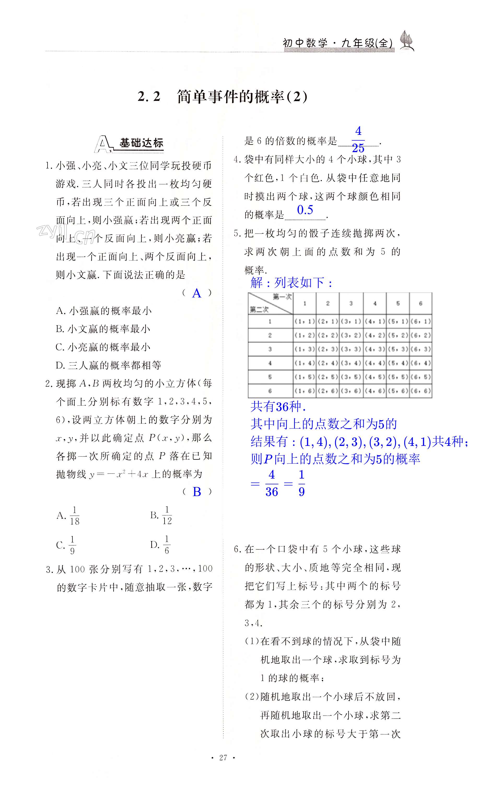 注:目前有些书本章节名称可能整理的还不是很完善,但都是按照顺序排列的,请同学们按照顺序仔细查找。练习册 2022年课时精练九年级数学全一册浙教版 答案主要是用来给同学们做完题方便对答案用的,请勿直接抄袭。