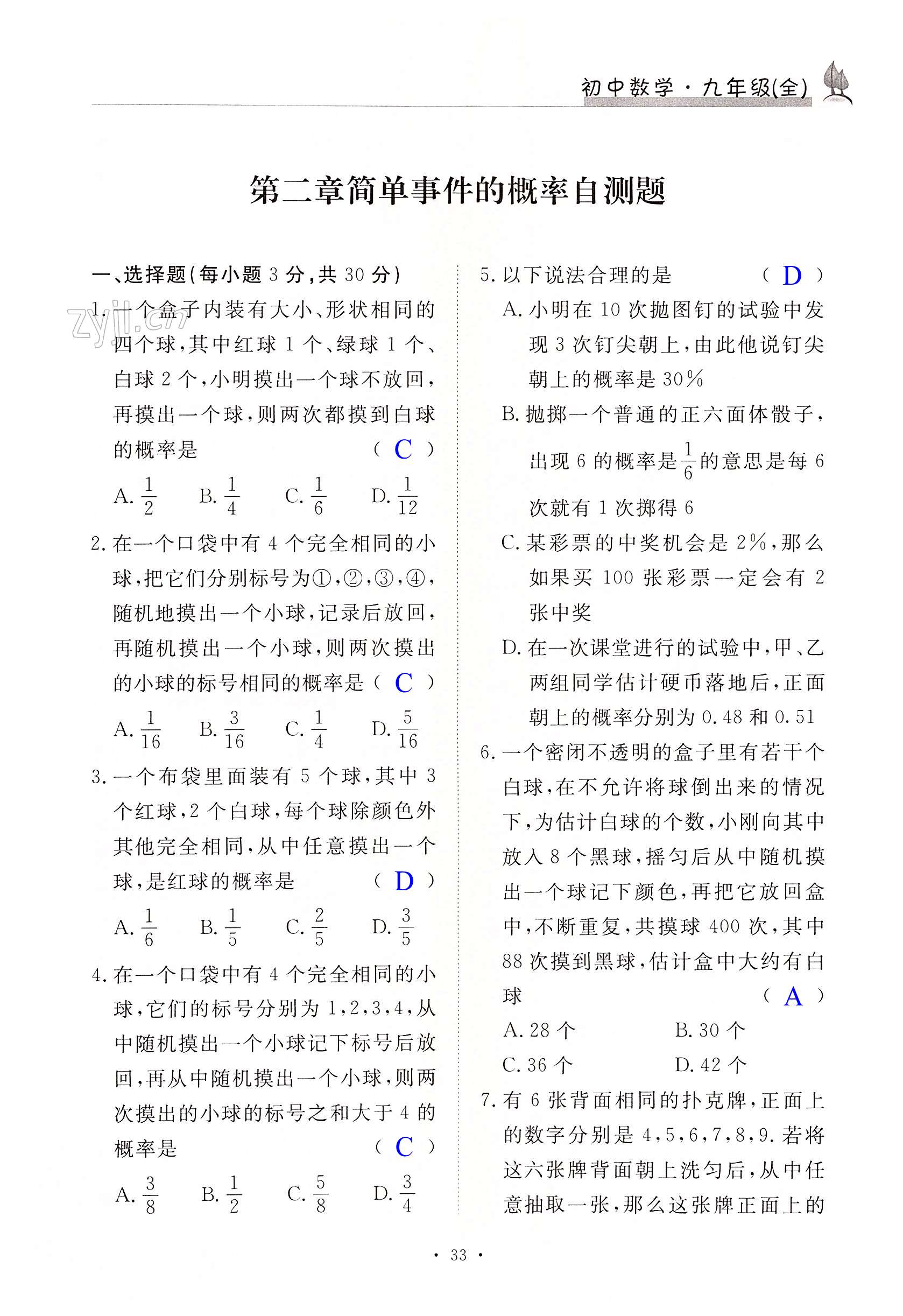 注:目前有些书本章节名称可能整理的还不是很完善,但都是按照顺序排列的,请同学们按照顺序仔细查找。练习册 2022年课时精练九年级数学全一册浙教版 答案主要是用来给同学们做完题方便对答案用的,请勿直接抄袭。