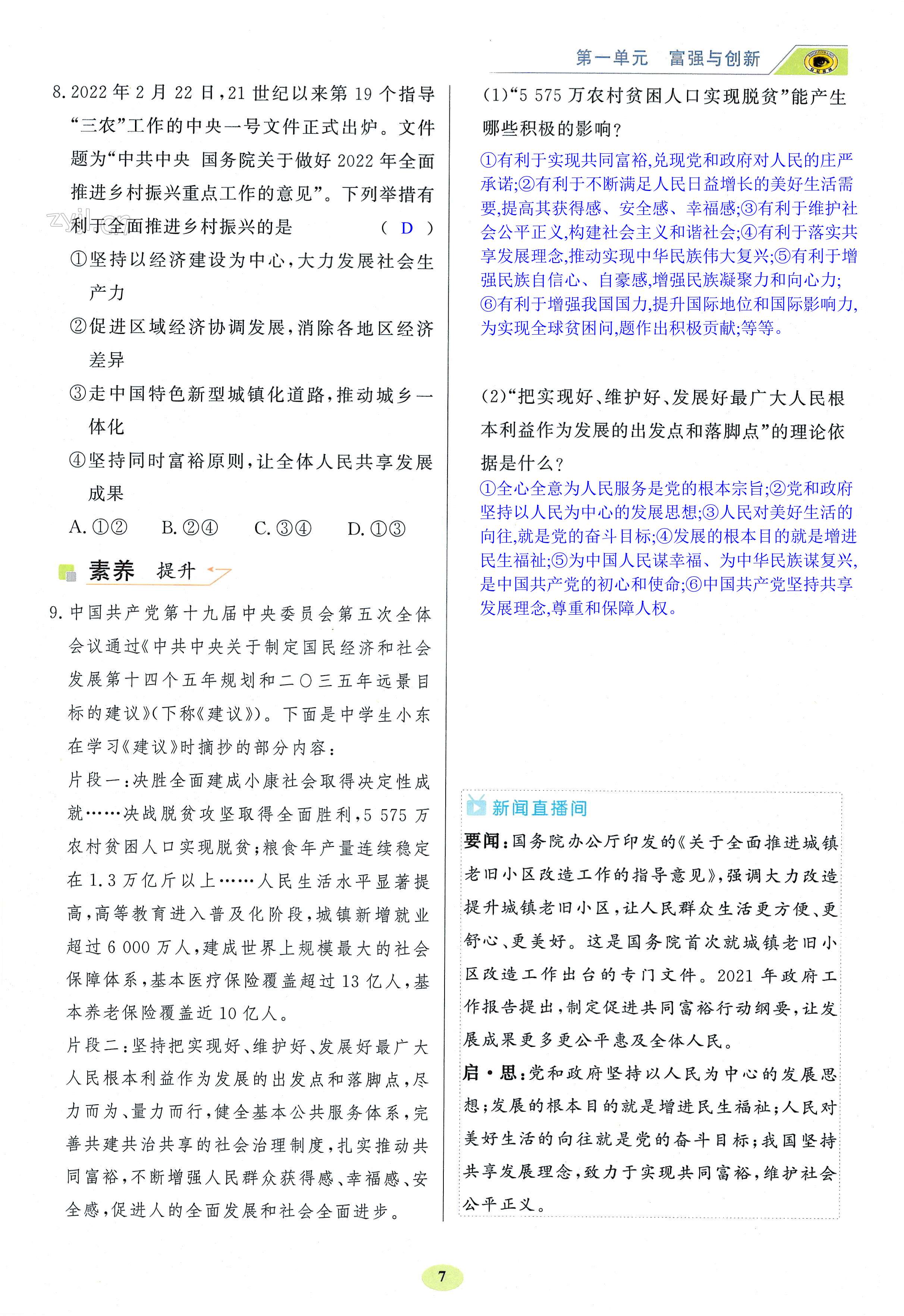 注:目前有些书本章节名称可能整理的还不是很完善,但都是按照顺序排列的,请同学们按照顺序仔细查找。练习册 2022年世纪金榜百练百胜九年级道德与法治上册人教版武汉专版 答案主要是用来给同学们做完题方便对答案用的,请勿直接抄袭。