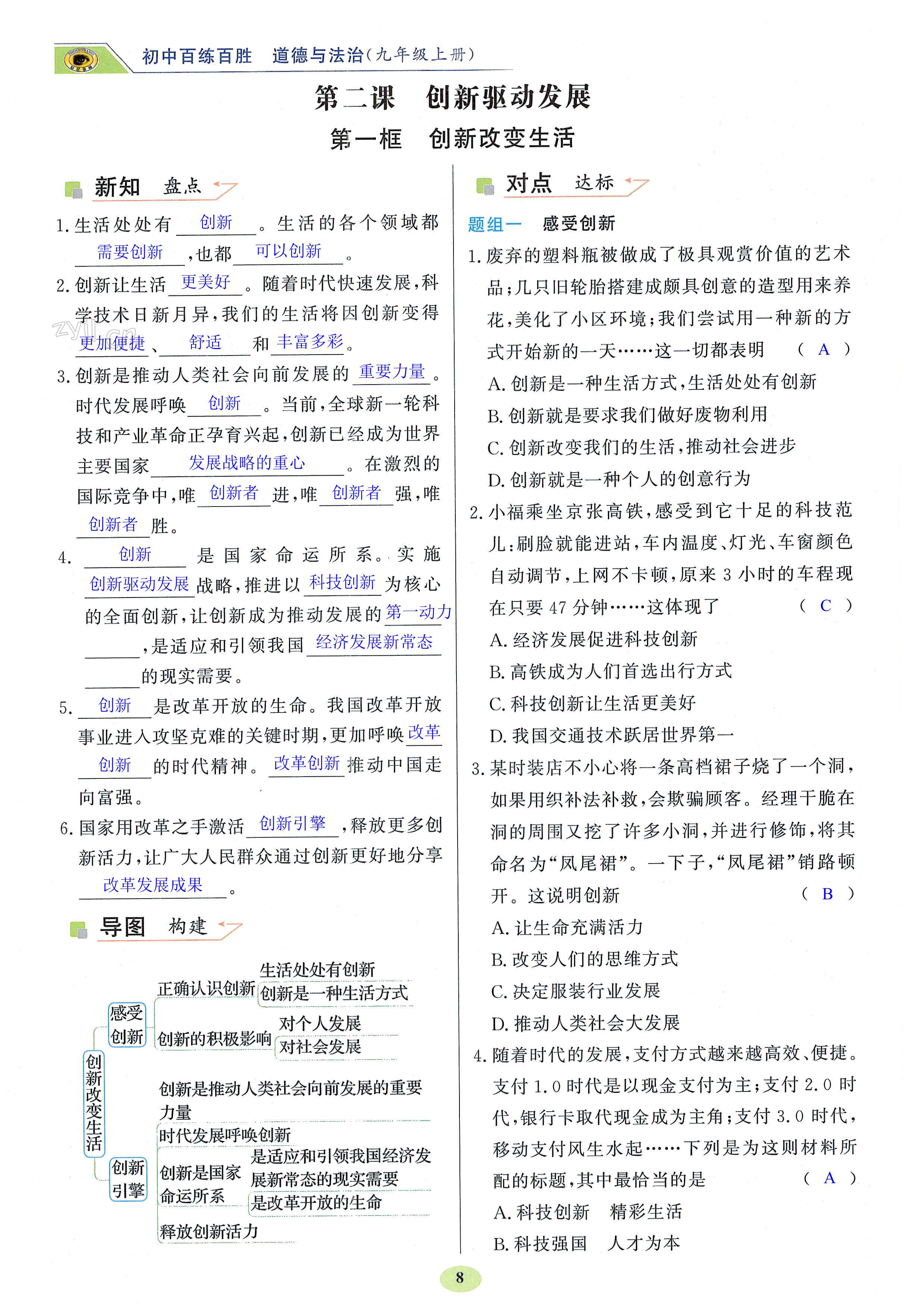 注:目前有些书本章节名称可能整理的还不是很完善,但都是按照顺序排列的,请同学们按照顺序仔细查找。练习册 2022年世纪金榜百练百胜九年级道德与法治上册人教版武汉专版 答案主要是用来给同学们做完题方便对答案用的,请勿直接抄袭。