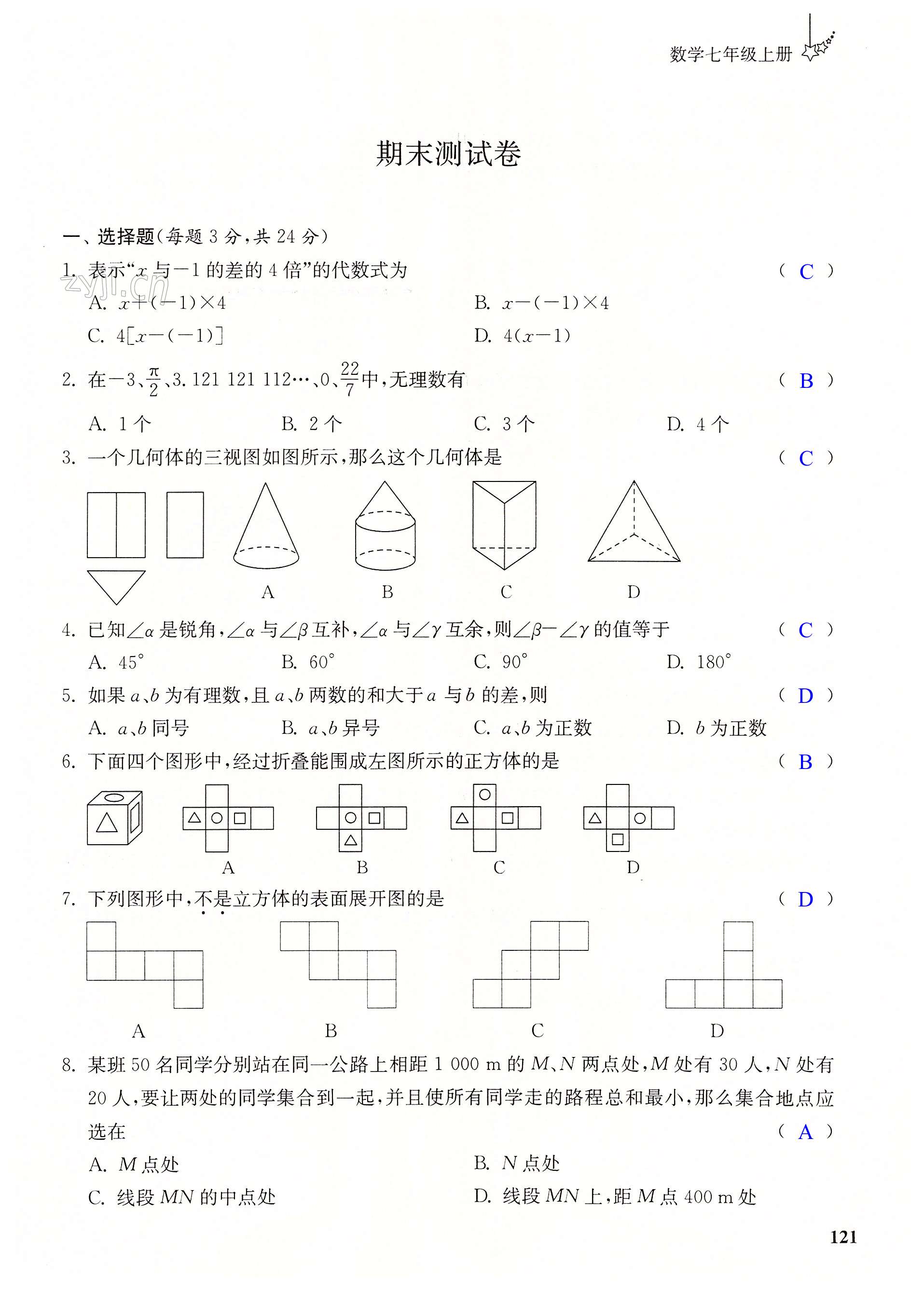 注:目前有些书本章节名称可能整理的还不是很完善,但都是按照顺序排列的,请同学们按照顺序仔细查找。练习册 2022年自能学记课时作业七年级数学上册苏科版 答案主要是用来给同学们做完题方便对答案用的,请勿直接抄袭。