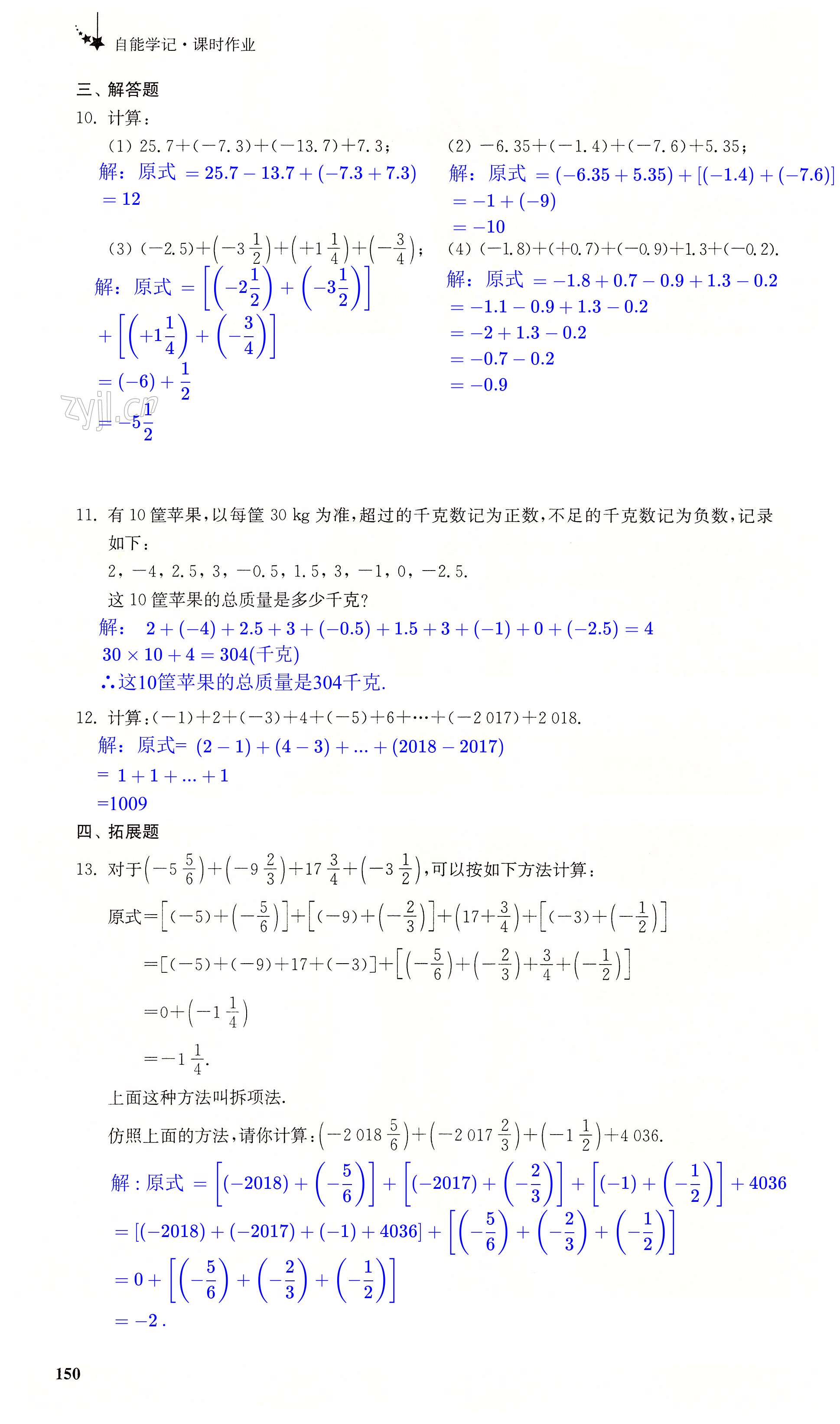 注:目前有些书本章节名称可能整理的还不是很完善,但都是按照顺序排列的,请同学们按照顺序仔细查找。练习册 2022年自能学记课时作业七年级数学上册苏科版 答案主要是用来给同学们做完题方便对答案用的,请勿直接抄袭。