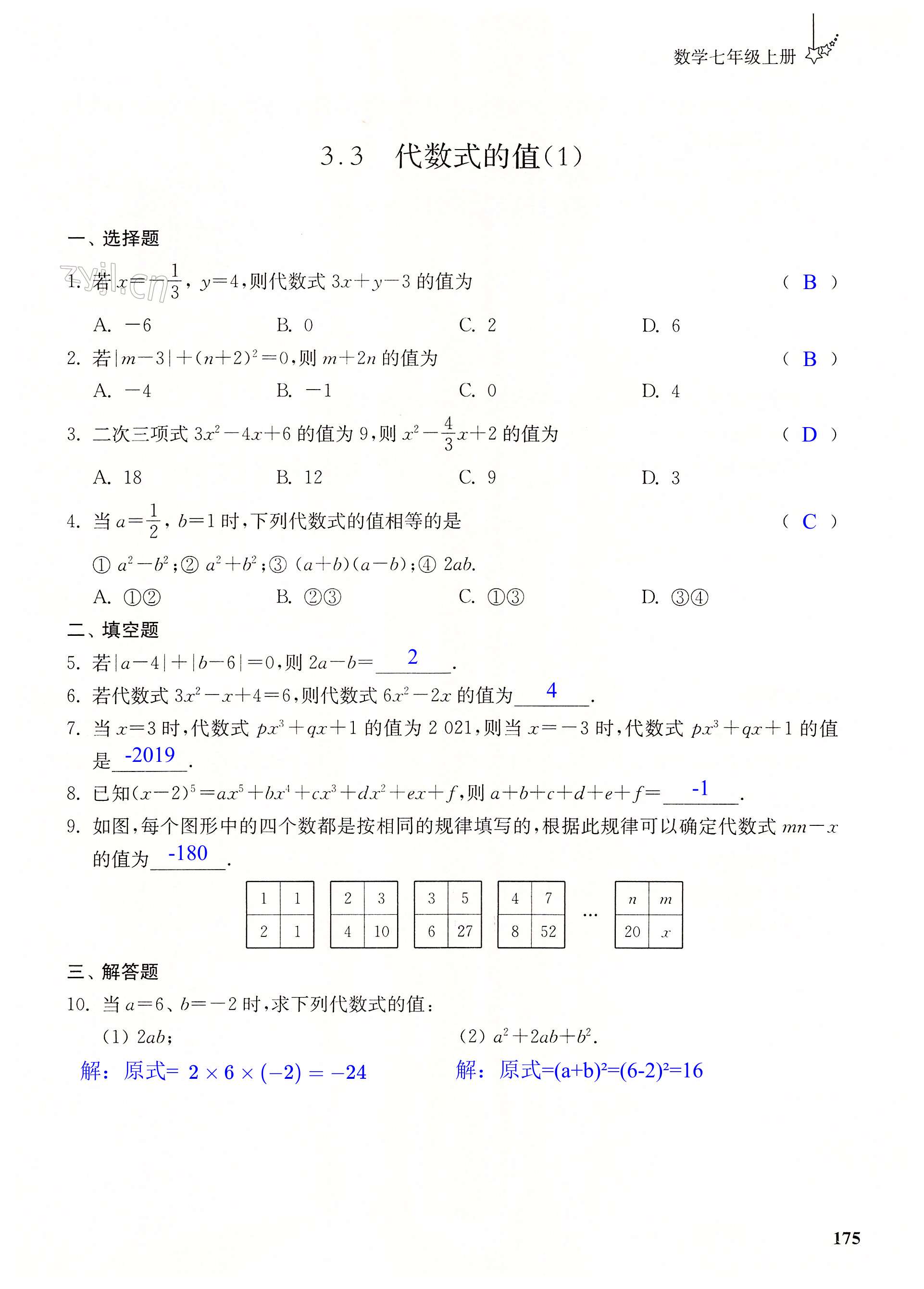 注:目前有些书本章节名称可能整理的还不是很完善,但都是按照顺序排列的,请同学们按照顺序仔细查找。练习册 2022年自能学记课时作业七年级数学上册苏科版 答案主要是用来给同学们做完题方便对答案用的,请勿直接抄袭。