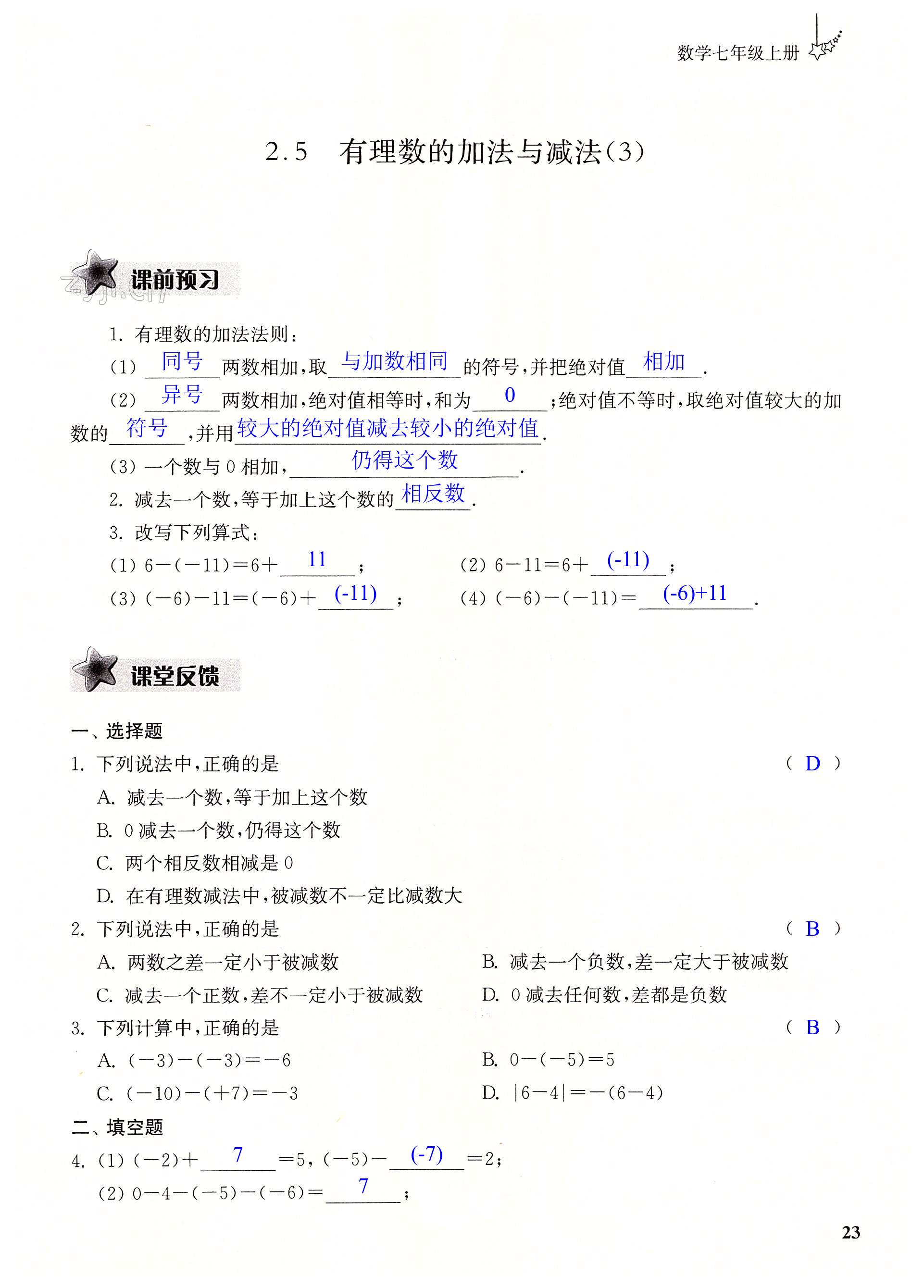 注:目前有些书本章节名称可能整理的还不是很完善,但都是按照顺序排列的,请同学们按照顺序仔细查找。练习册 2022年自能学记课时作业七年级数学上册苏科版 答案主要是用来给同学们做完题方便对答案用的,请勿直接抄袭。