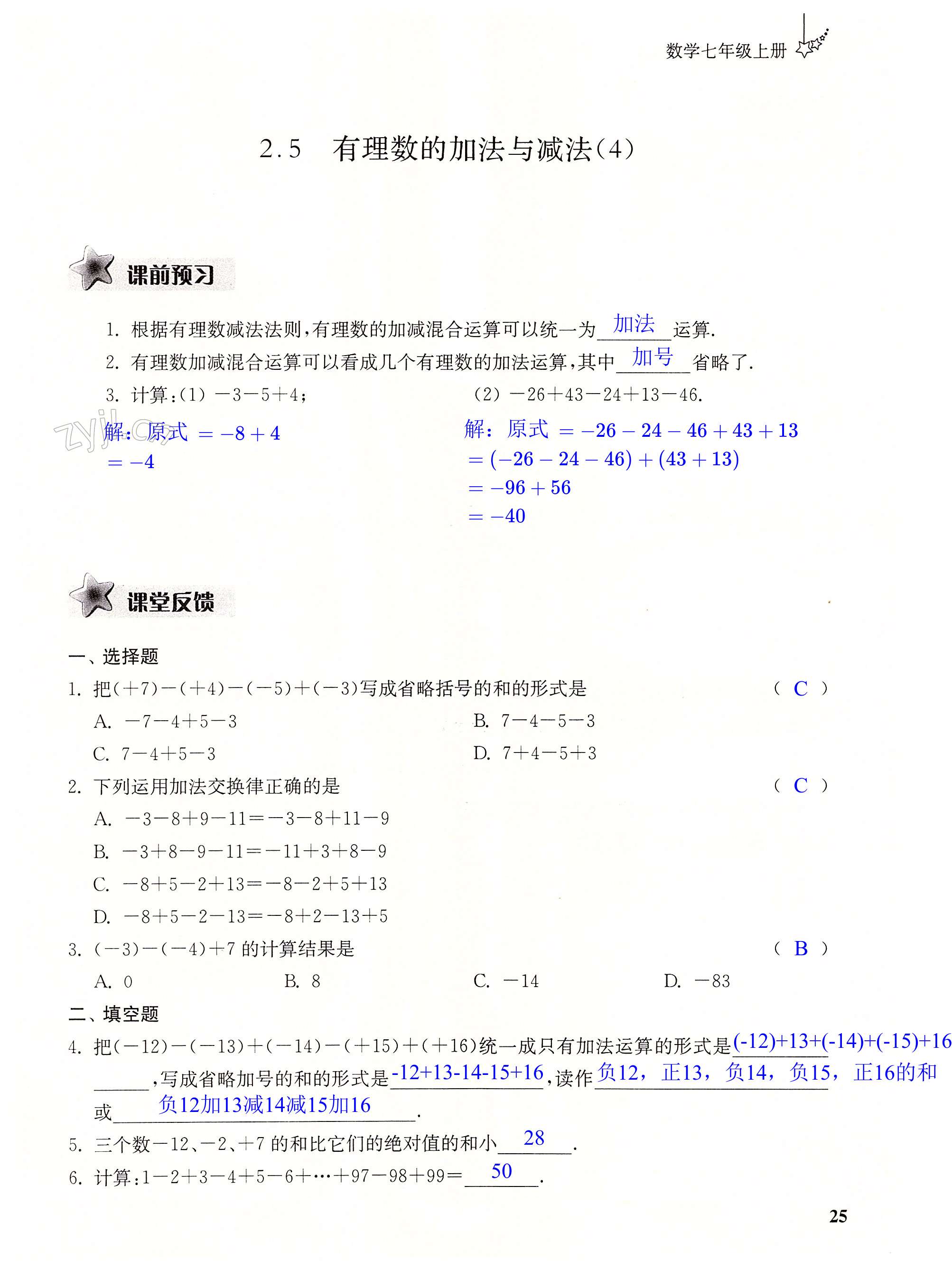 注:目前有些书本章节名称可能整理的还不是很完善,但都是按照顺序排列的,请同学们按照顺序仔细查找。练习册 2022年自能学记课时作业七年级数学上册苏科版 答案主要是用来给同学们做完题方便对答案用的,请勿直接抄袭。