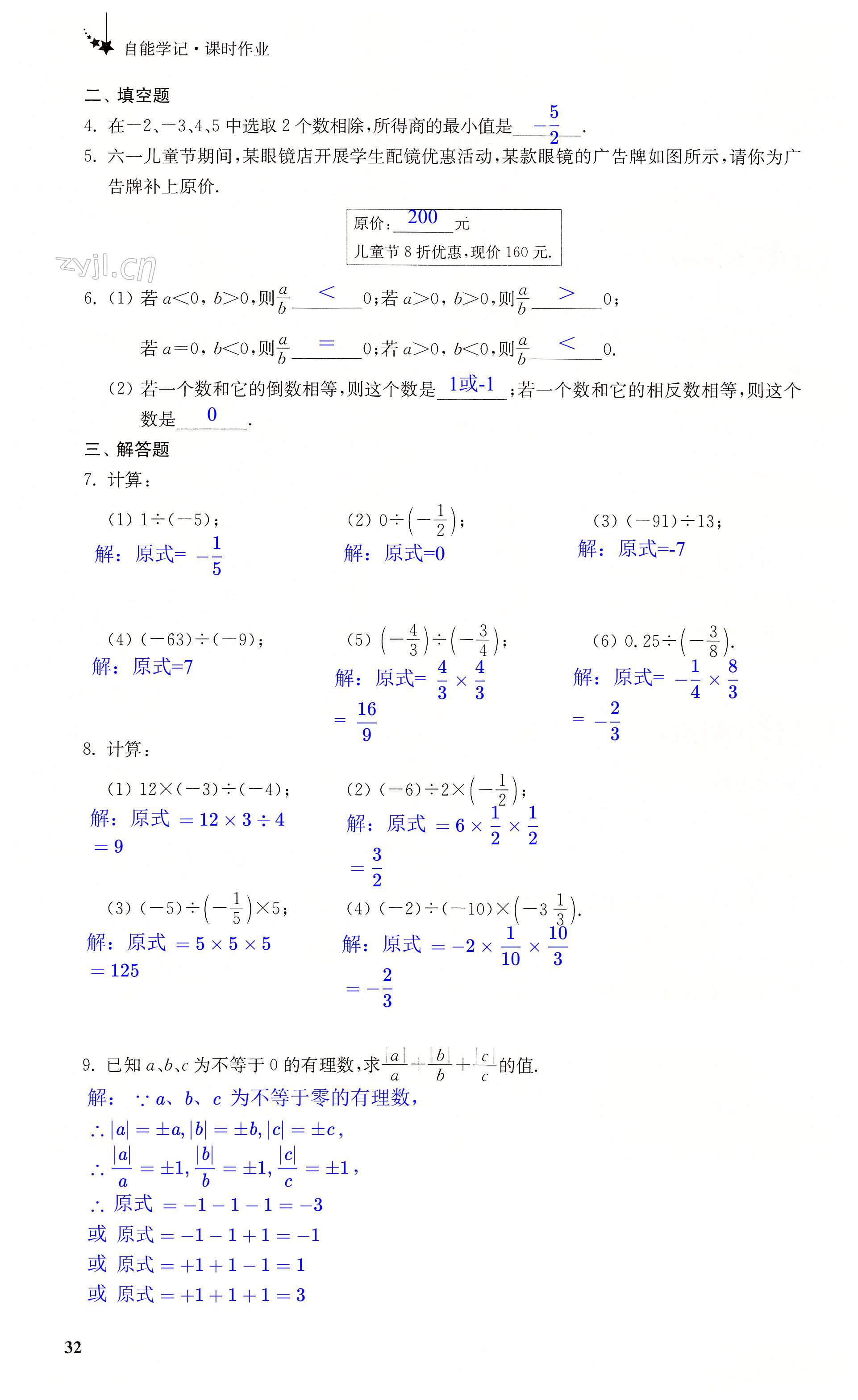注:目前有些书本章节名称可能整理的还不是很完善,但都是按照顺序排列的,请同学们按照顺序仔细查找。练习册 2022年自能学记课时作业七年级数学上册苏科版 答案主要是用来给同学们做完题方便对答案用的,请勿直接抄袭。
