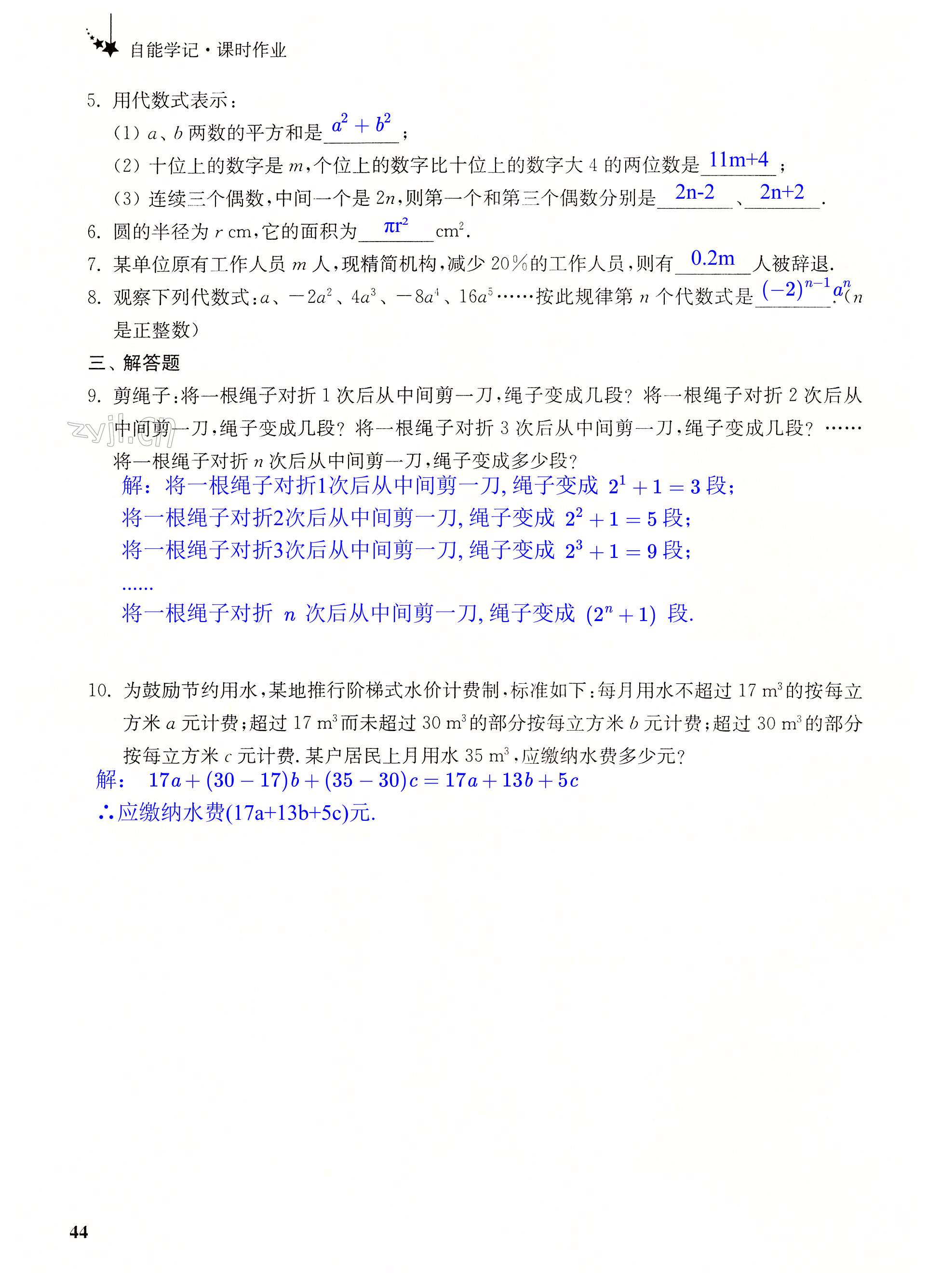 注:目前有些书本章节名称可能整理的还不是很完善,但都是按照顺序排列的,请同学们按照顺序仔细查找。练习册 2022年自能学记课时作业七年级数学上册苏科版 答案主要是用来给同学们做完题方便对答案用的,请勿直接抄袭。