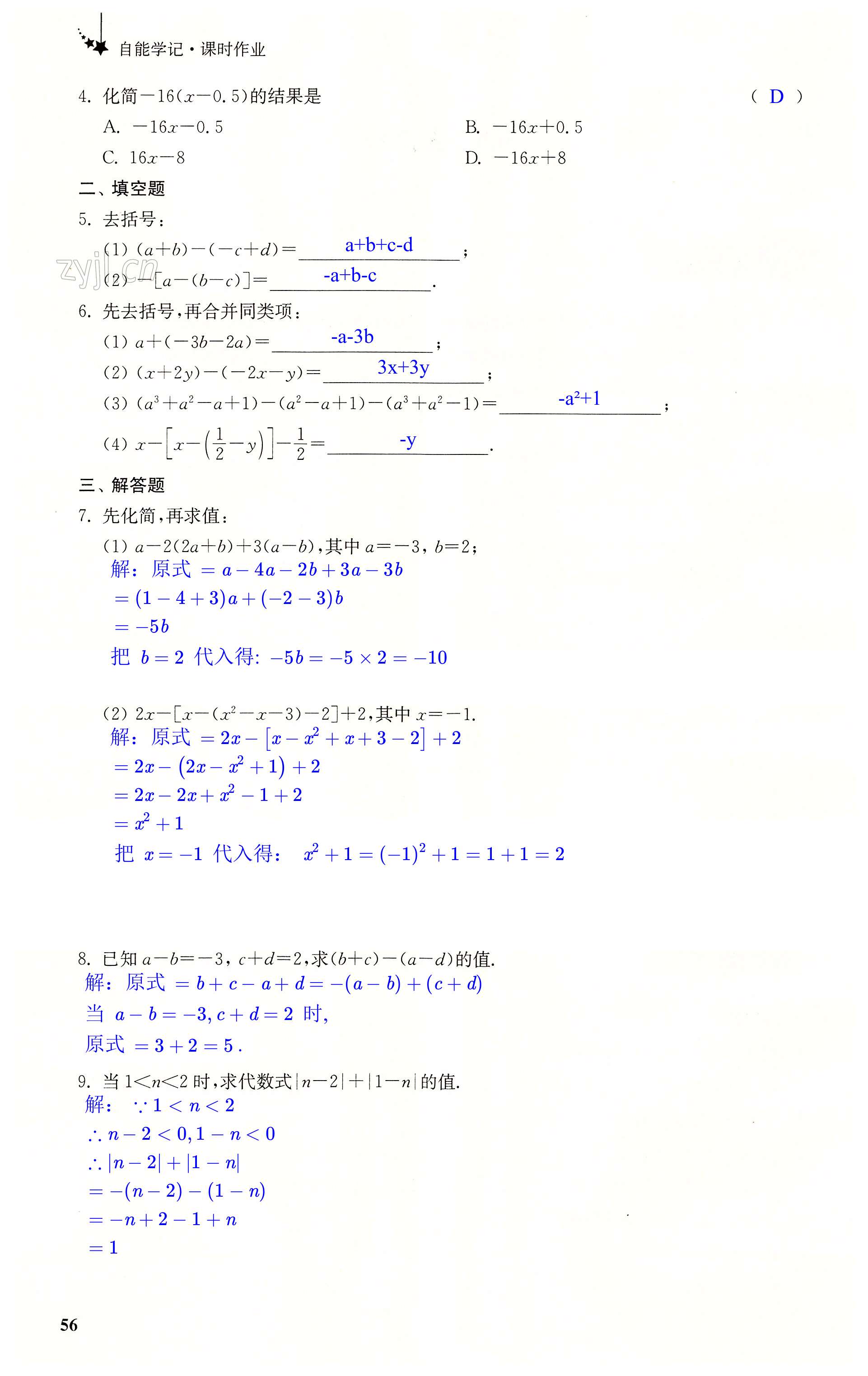 注:目前有些书本章节名称可能整理的还不是很完善,但都是按照顺序排列的,请同学们按照顺序仔细查找。练习册 2022年自能学记课时作业七年级数学上册苏科版 答案主要是用来给同学们做完题方便对答案用的,请勿直接抄袭。