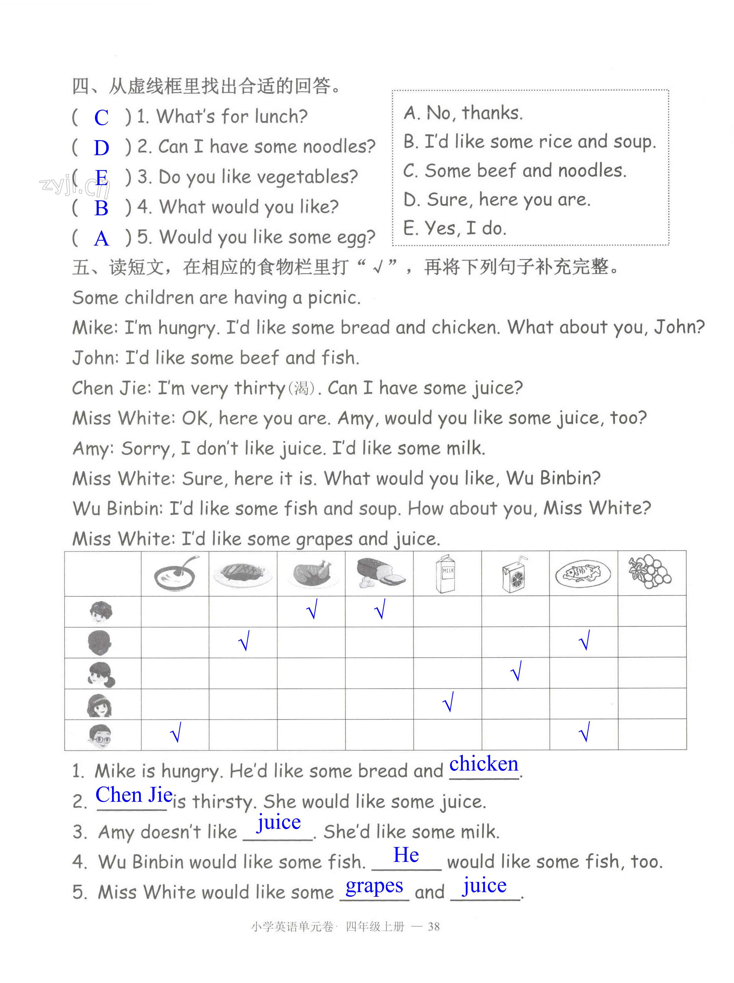 注:目前有些书本章节名称可能整理的还不是很完善,但都是按照顺序排列的,请同学们按照顺序仔细查找。练习册 2022年小学英语单元卷宁波出版社四年级上册人教版 答案主要是用来给同学们做完题方便对答案用的,请勿直接抄袭。