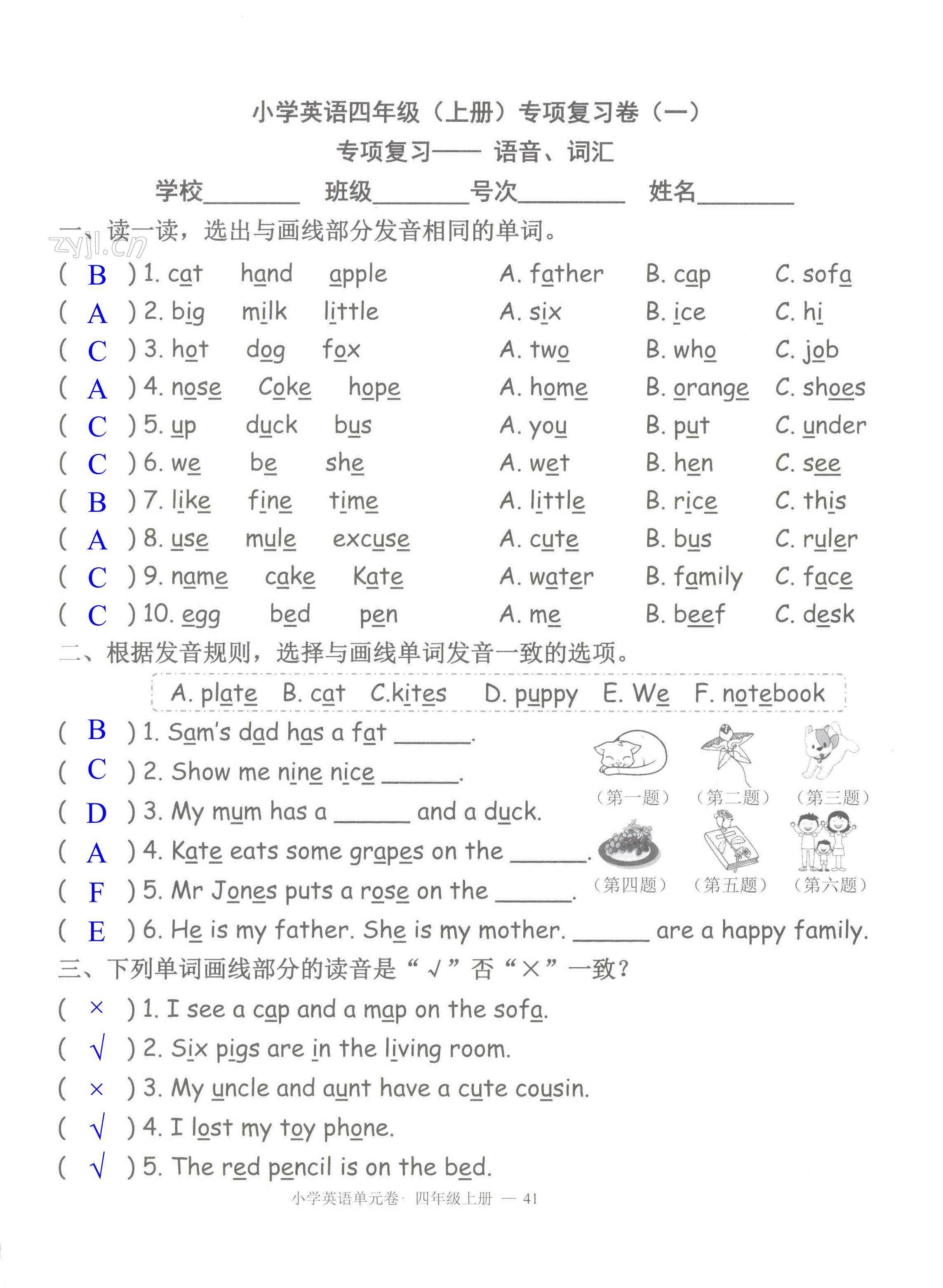 注:目前有些书本章节名称可能整理的还不是很完善,但都是按照顺序排列的,请同学们按照顺序仔细查找。练习册 2022年小学英语单元卷宁波出版社四年级上册人教版 答案主要是用来给同学们做完题方便对答案用的,请勿直接抄袭。