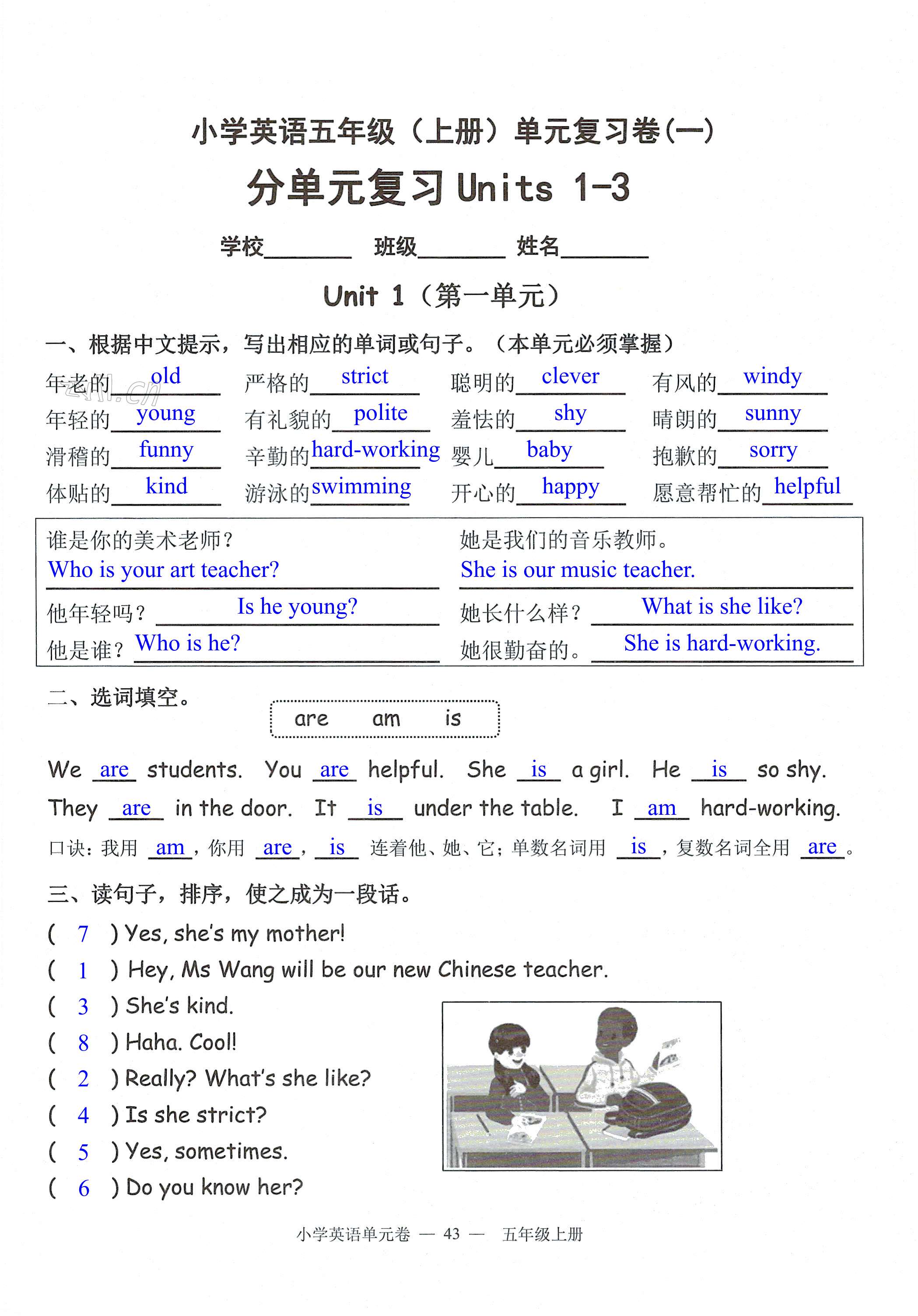 注:目前有些书本章节名称可能整理的还不是很完善,但都是按照顺序排列的,请同学们按照顺序仔细查找。练习册 2022年小学英语单元卷宁波出版社五年级上册人教版 答案主要是用来给同学们做完题方便对答案用的,请勿直接抄袭。