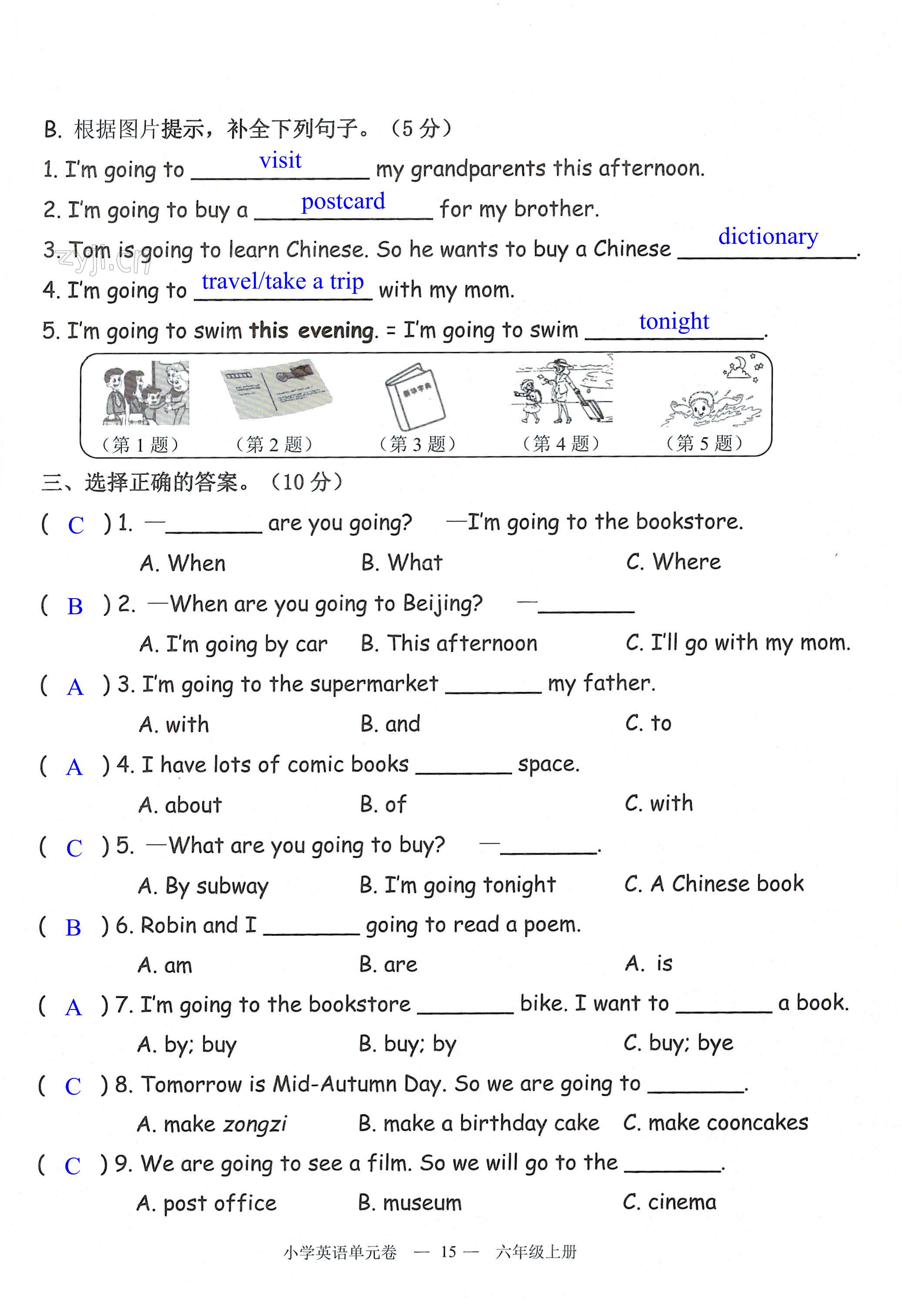 注:目前有些书本章节名称可能整理的还不是很完善,但都是按照顺序排列的,请同学们按照顺序仔细查找。练习册 2022年小学英语单元卷宁波出版社六年级上册人教版 答案主要是用来给同学们做完题方便对答案用的,请勿直接抄袭。