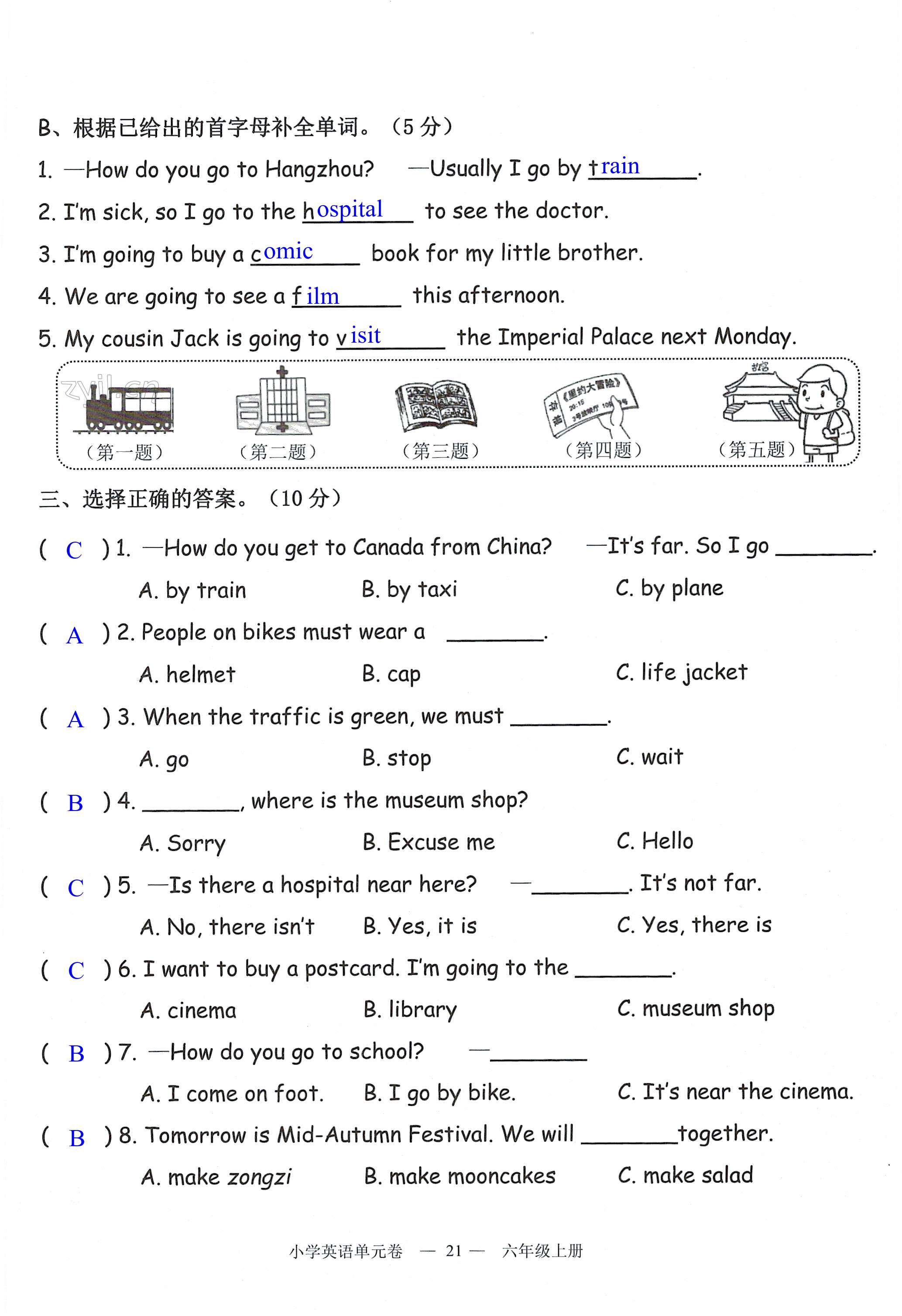 注:目前有些书本章节名称可能整理的还不是很完善,但都是按照顺序排列的,请同学们按照顺序仔细查找。练习册 2022年小学英语单元卷宁波出版社六年级上册人教版 答案主要是用来给同学们做完题方便对答案用的,请勿直接抄袭。