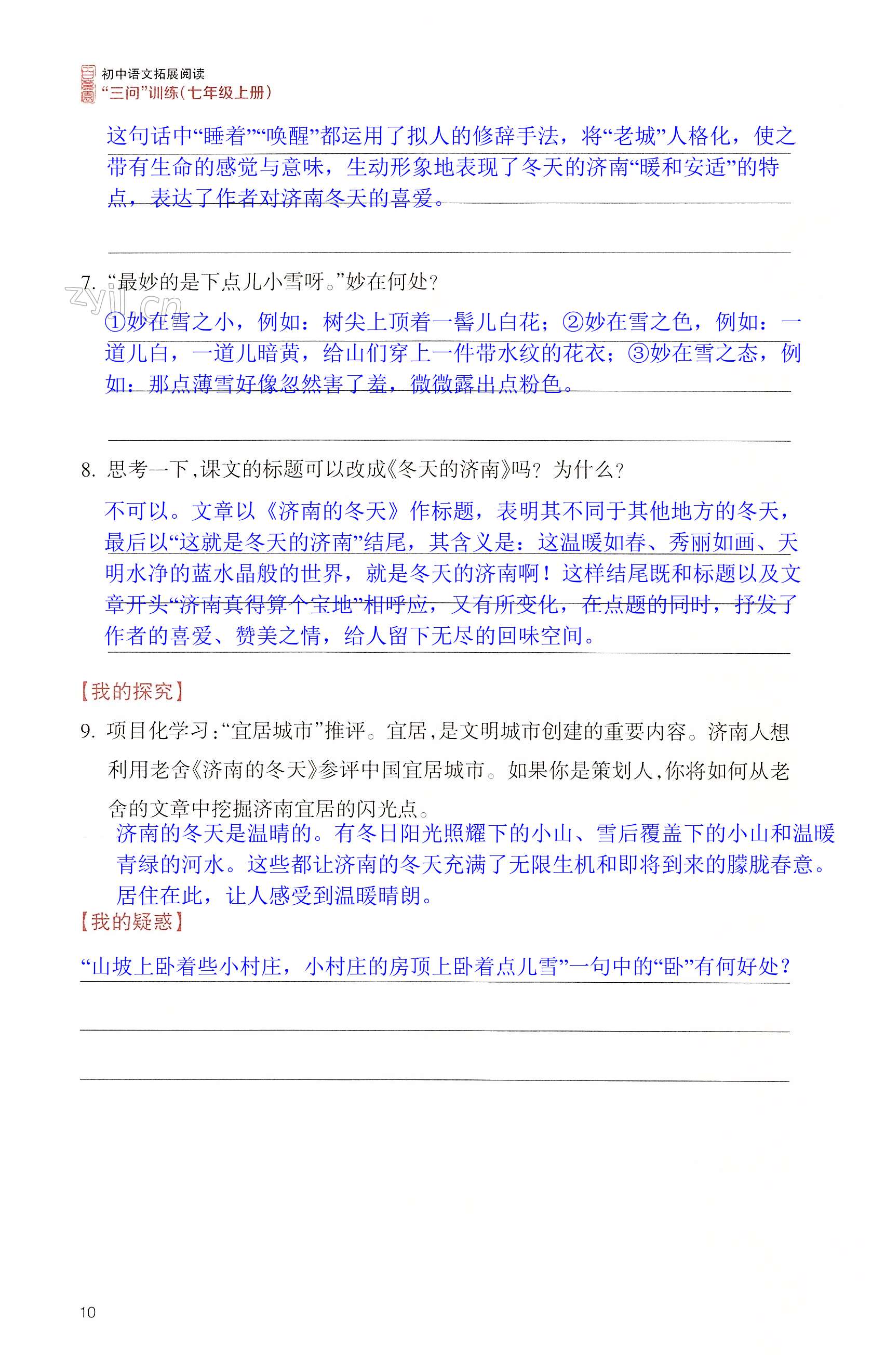 注:目前有些书本章节名称可能整理的还不是很完善,但都是按照顺序排列的,请同学们按照顺序仔细查找。练习册 2022年拓展阅读三问训练七年级语文上册人教版 答案主要是用来给同学们做完题方便对答案用的,请勿直接抄袭。