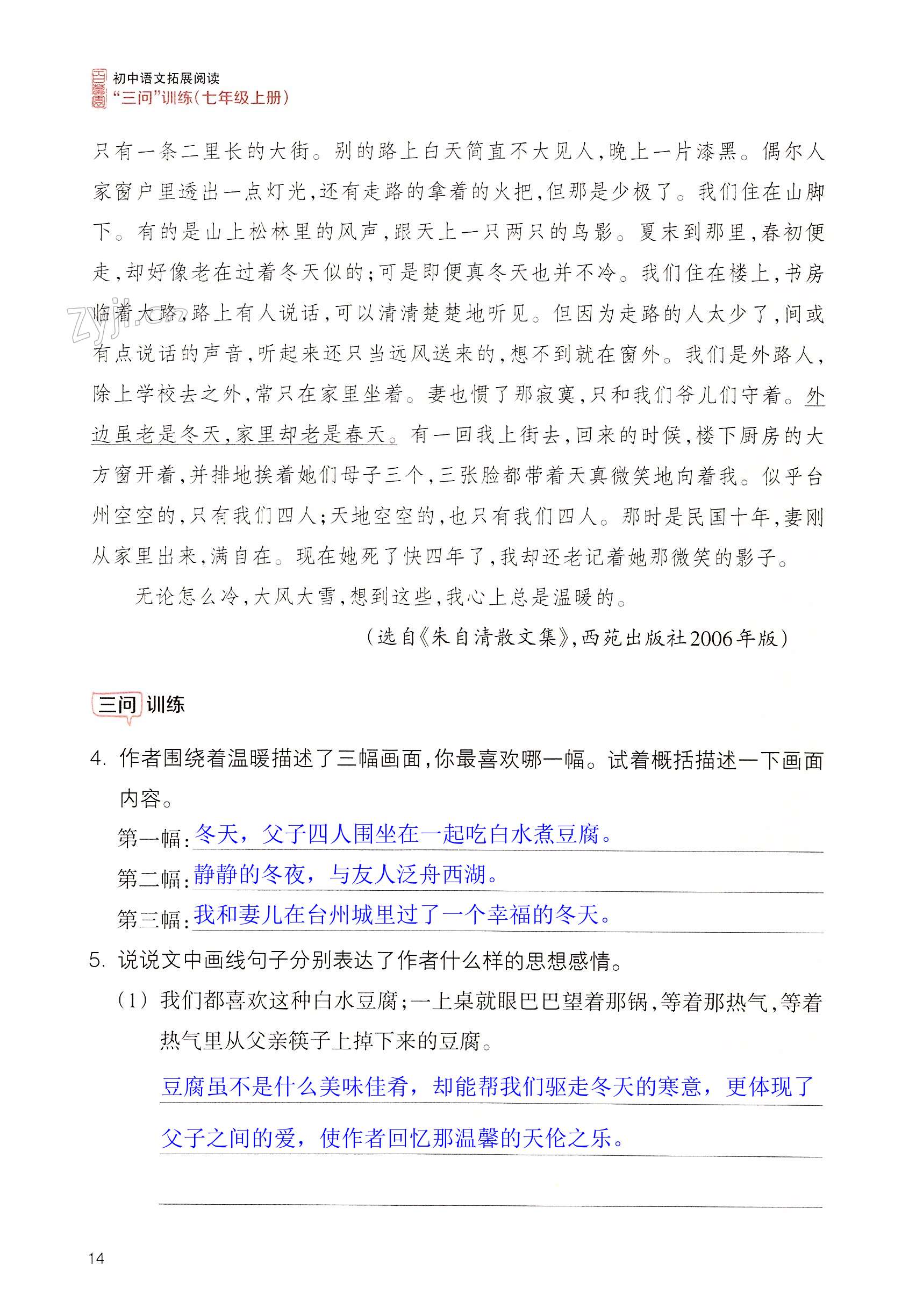 注:目前有些书本章节名称可能整理的还不是很完善,但都是按照顺序排列的,请同学们按照顺序仔细查找。练习册 2022年拓展阅读三问训练七年级语文上册人教版 答案主要是用来给同学们做完题方便对答案用的,请勿直接抄袭。