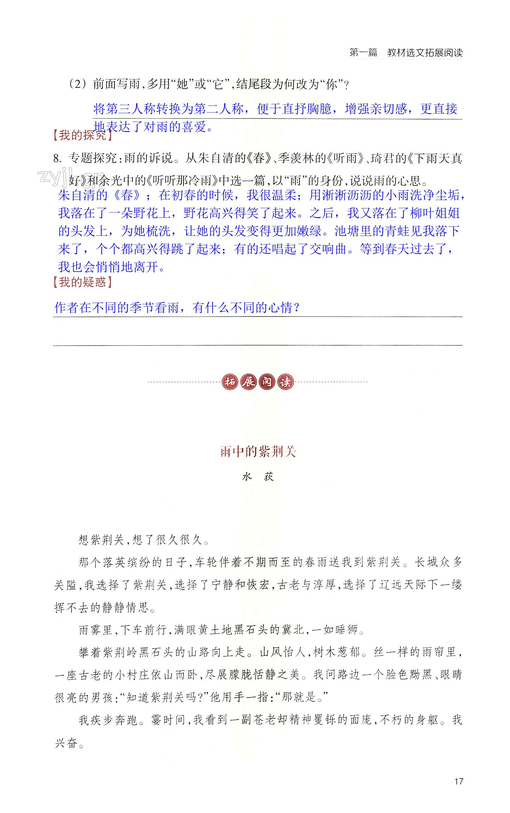 注:目前有些书本章节名称可能整理的还不是很完善,但都是按照顺序排列的,请同学们按照顺序仔细查找。练习册 2022年拓展阅读三问训练七年级语文上册人教版 答案主要是用来给同学们做完题方便对答案用的,请勿直接抄袭。