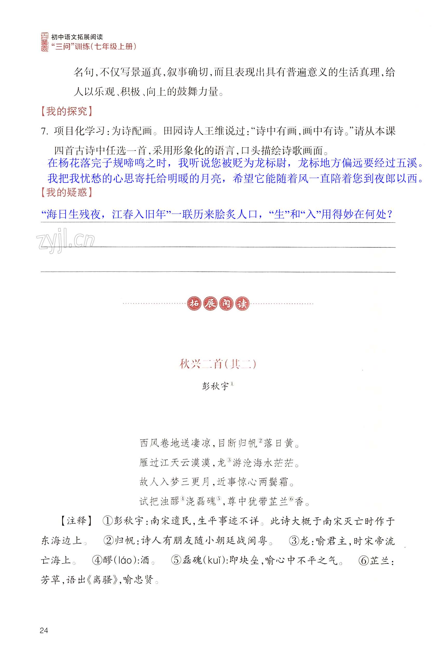 2022年拓展阅读三问训练七年级语文上册人教版