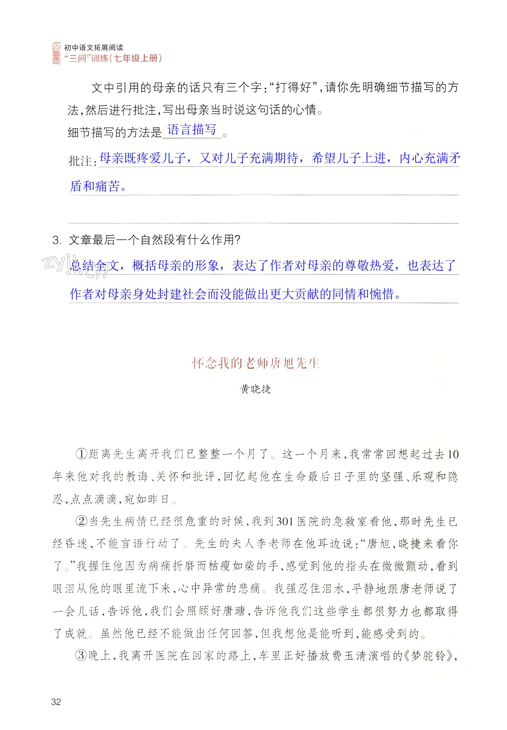 注:目前有些书本章节名称可能整理的还不是很完善,但都是按照顺序排列的,请同学们按照顺序仔细查找。练习册 2022年拓展阅读三问训练七年级语文上册人教版 答案主要是用来给同学们做完题方便对答案用的,请勿直接抄袭。
