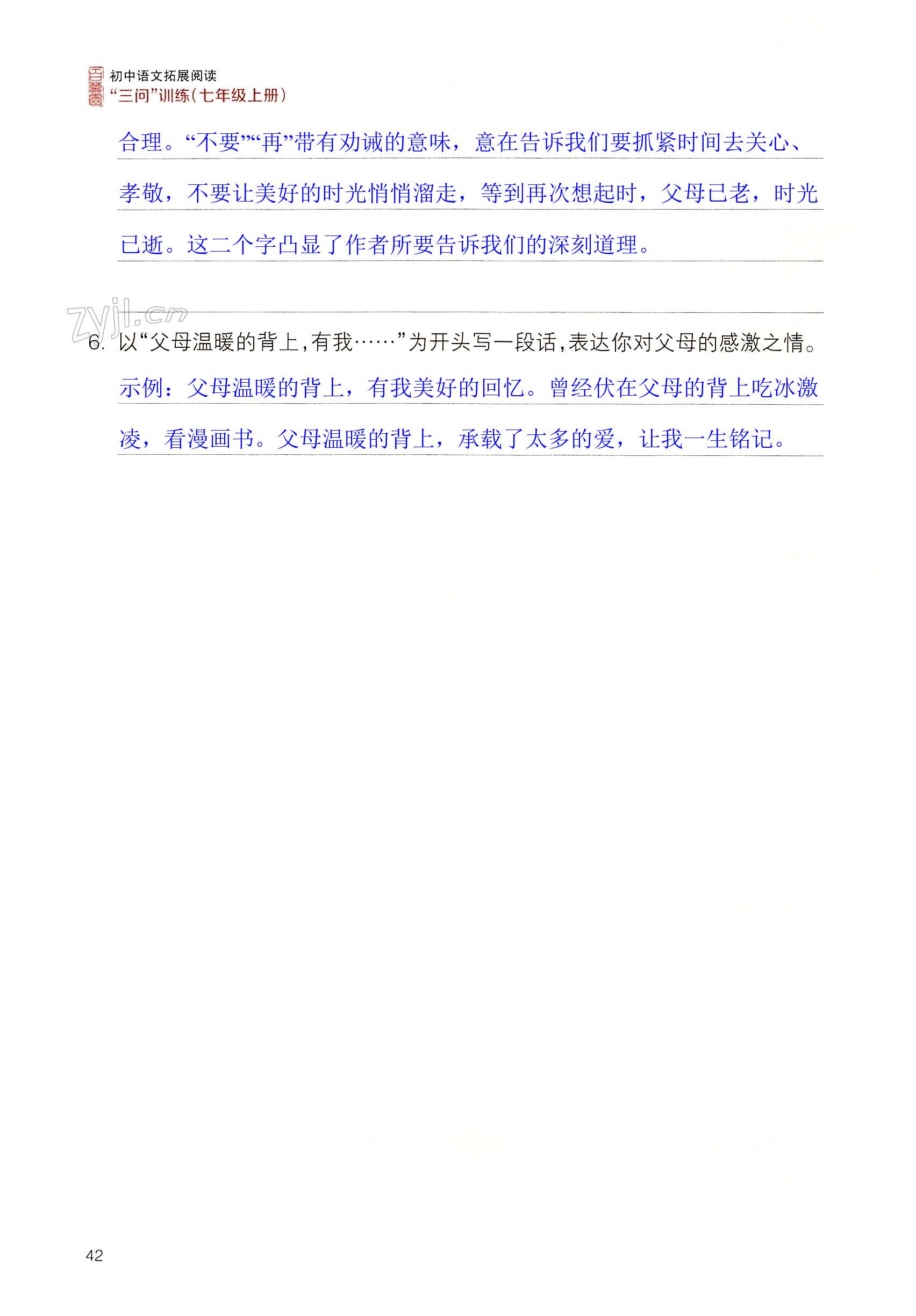 注:目前有些书本章节名称可能整理的还不是很完善,但都是按照顺序排列的,请同学们按照顺序仔细查找。练习册 2022年拓展阅读三问训练七年级语文上册人教版 答案主要是用来给同学们做完题方便对答案用的,请勿直接抄袭。
