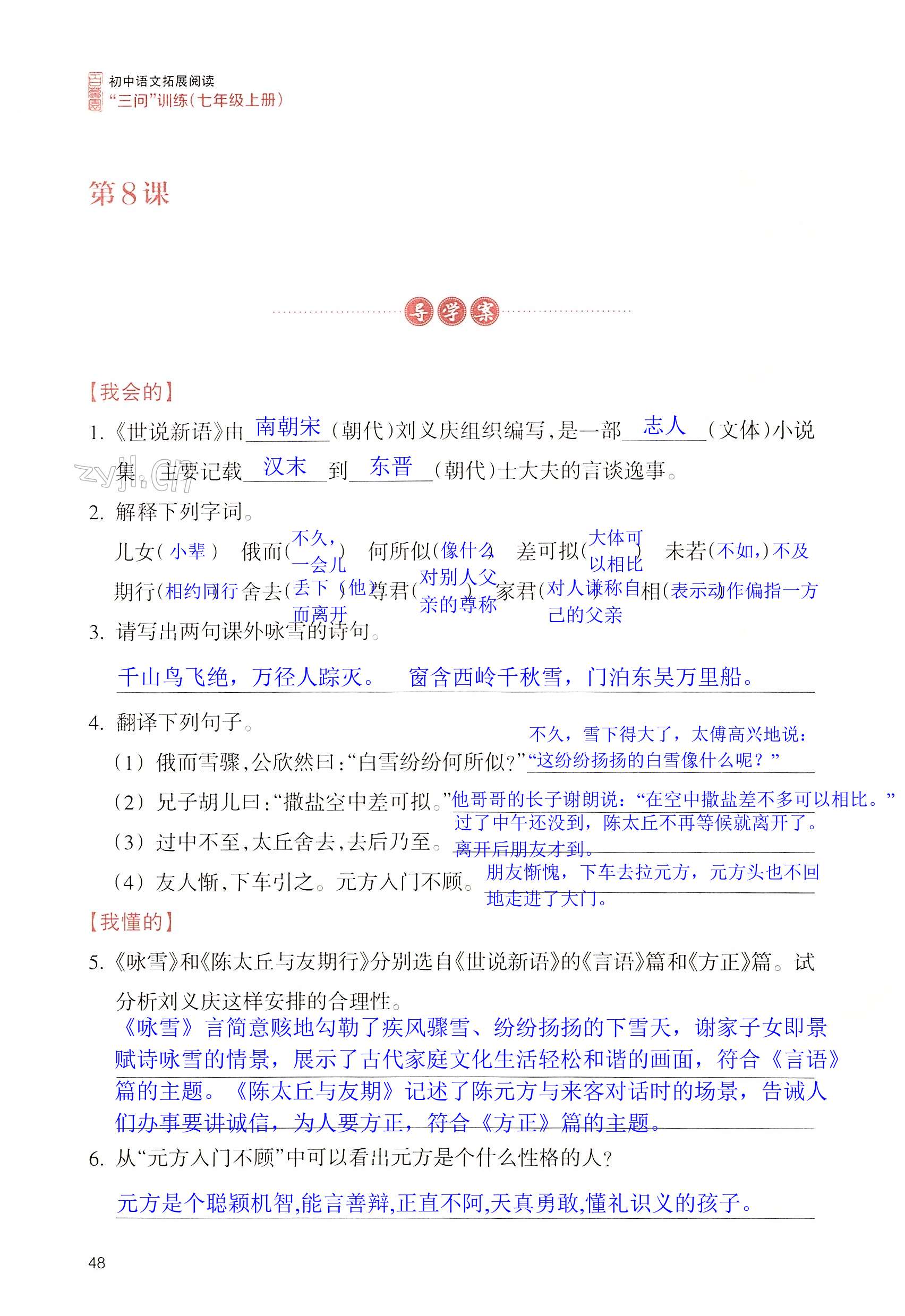 注:目前有些书本章节名称可能整理的还不是很完善,但都是按照顺序排列的,请同学们按照顺序仔细查找。练习册 2022年拓展阅读三问训练七年级语文上册人教版 答案主要是用来给同学们做完题方便对答案用的,请勿直接抄袭。