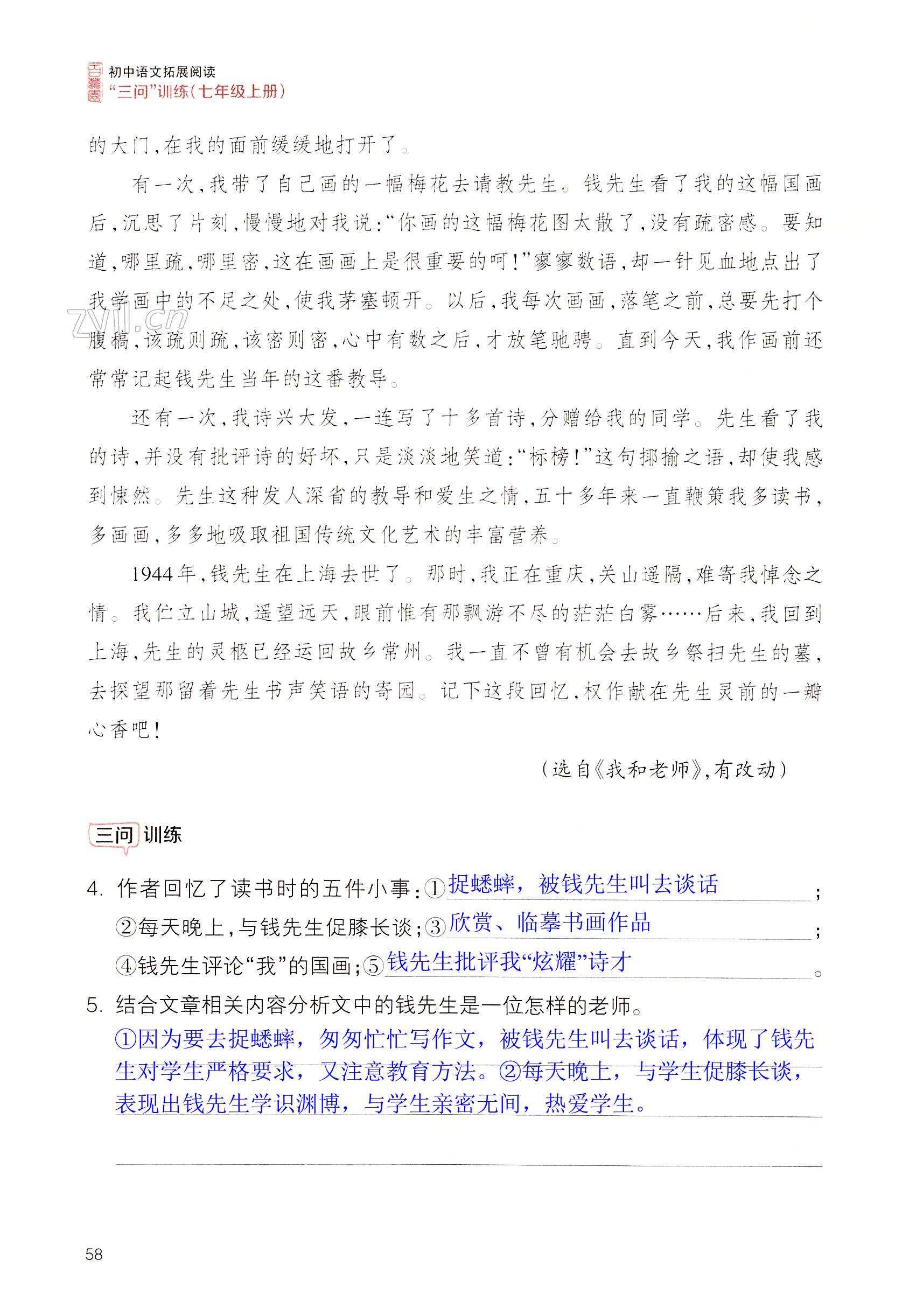 2022年拓展阅读三问训练七年级语文上册人教版